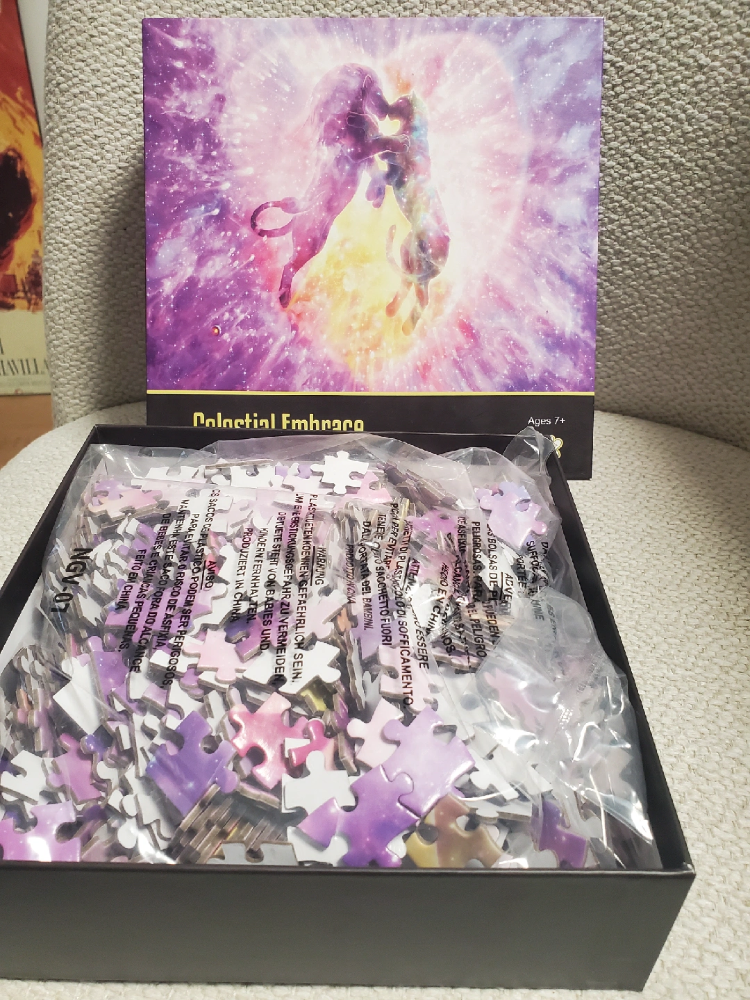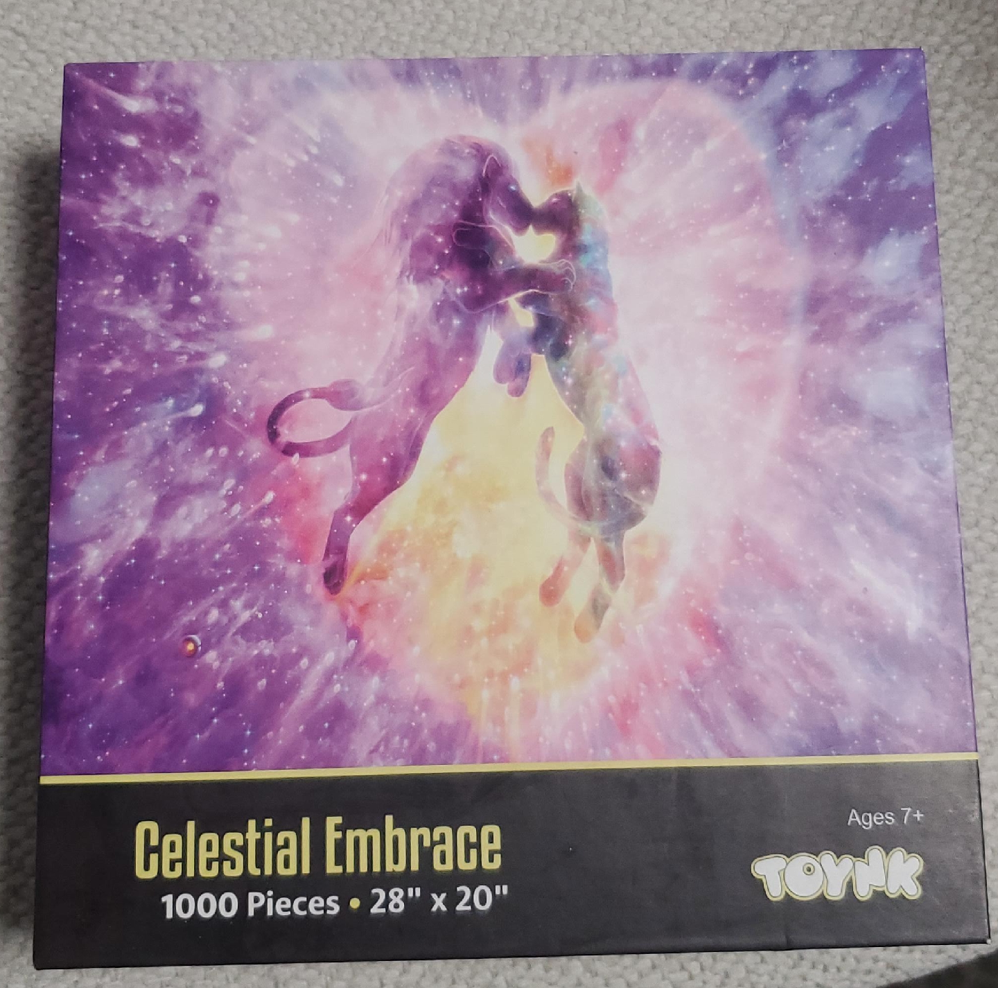 Celestial Embrace puzzle by TOYMK! It's a beautiful image and contains 1000 pieces. The assembled puzzle is 28" x 20". Recommended for ages 7+ Unused