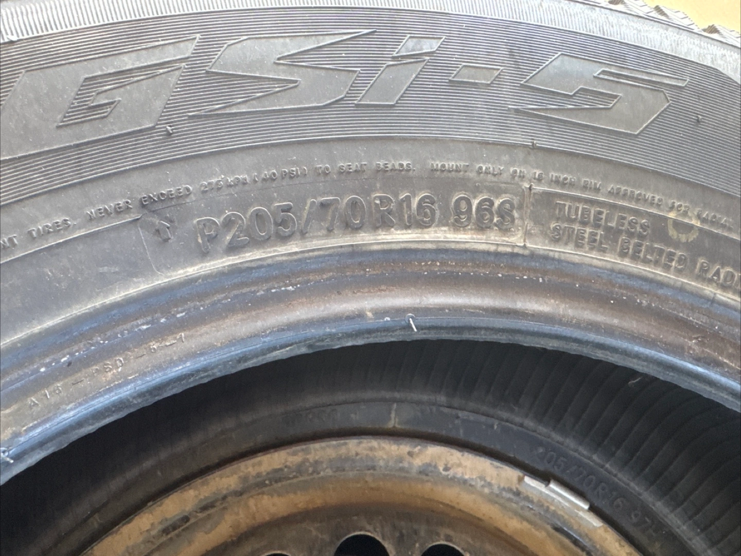 Selling a set of Gislaved Nord Frost 6 tires. The size is P205/70R16 96S. They are tubeless steel belted radial tires. 4 are winter and 2 all season