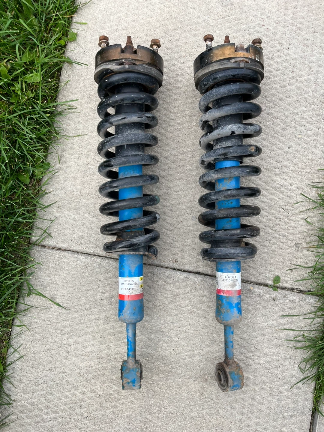 Selling a pair of front struts/shocks for a Toyota Tacoma with 2” levelling spacer. They show signs of use and could use a good cleaning. Please see photos for condition.