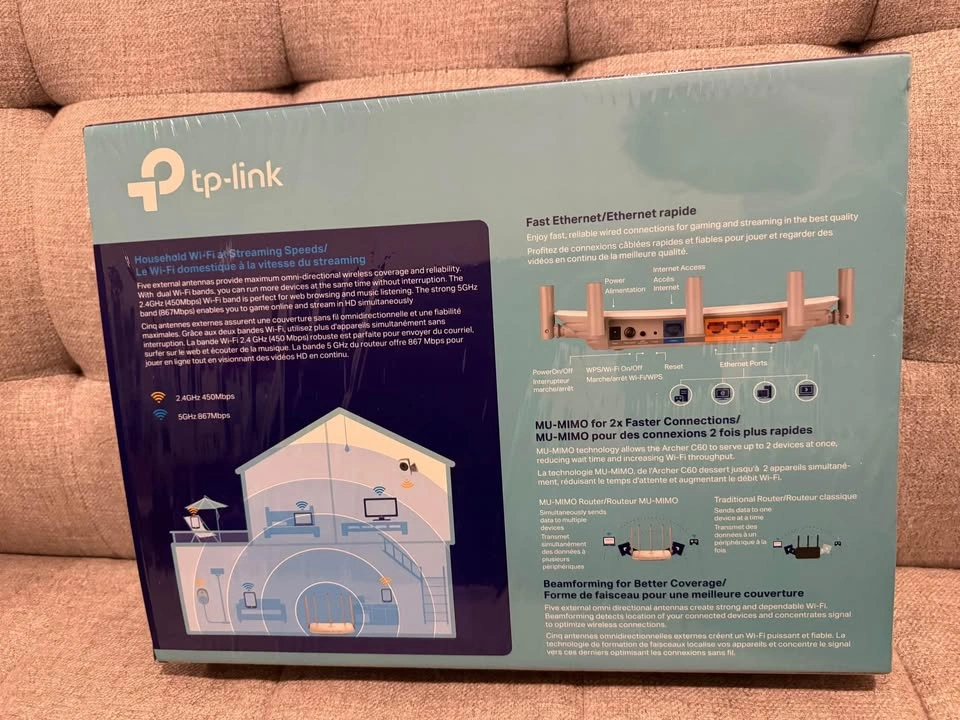 Five external antennas provide maximum omni-directional wireless coverage and reliability. With dual Wi-Fi bands, you can run more devices at the same time without interruption. The 2.4GHz (450Mbps) Wi-Fi band is perfect for web browsing and music listening. The strong 5GHz band (867Mbps) enables you to game online and stream in HD simultaneously. Pickup College Park. Let me know if you're interested!