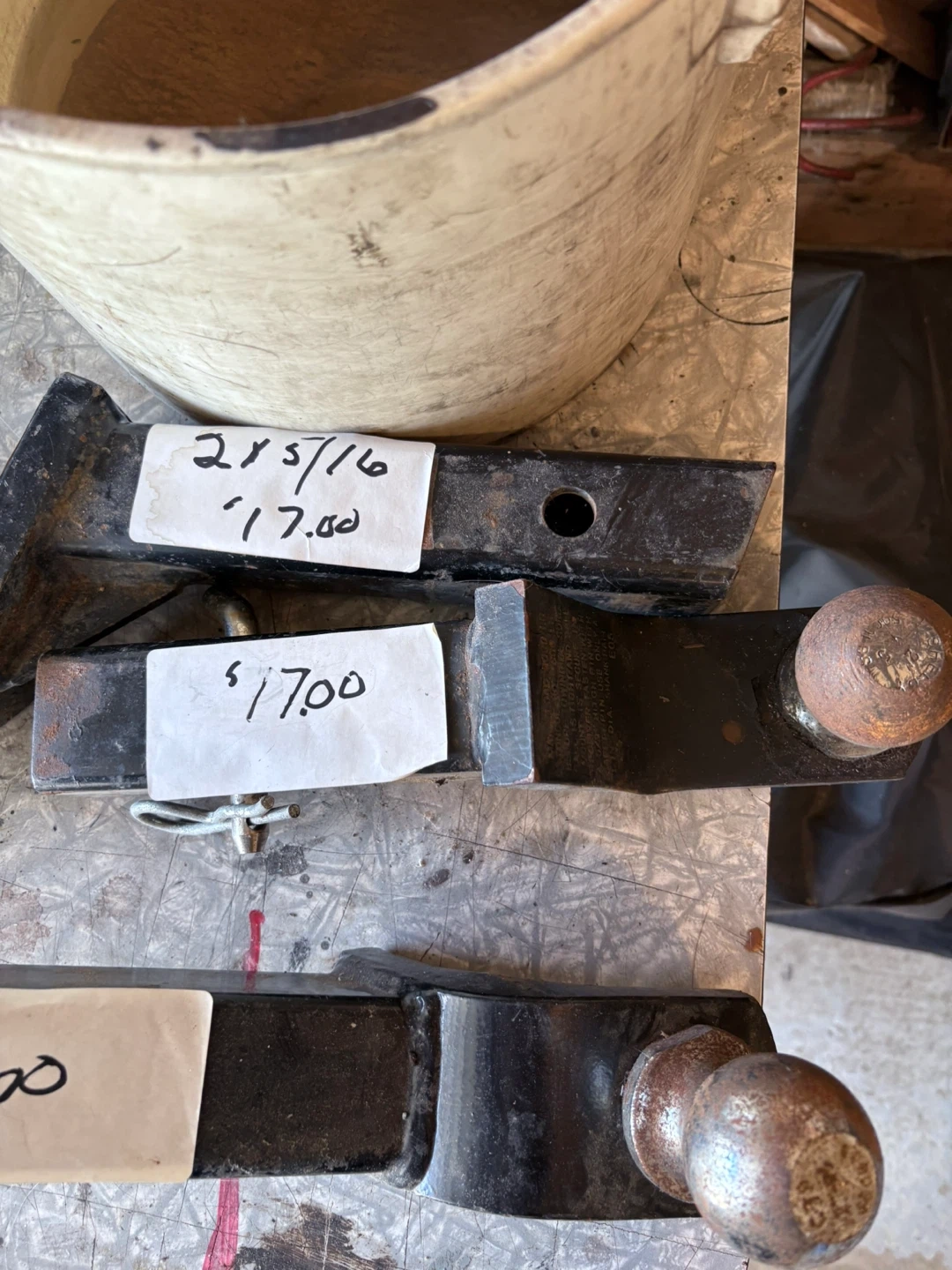 Selling a trailer hitch ball mount. It's in used condition, as you can see in the photos. Asking $17 Three are available
