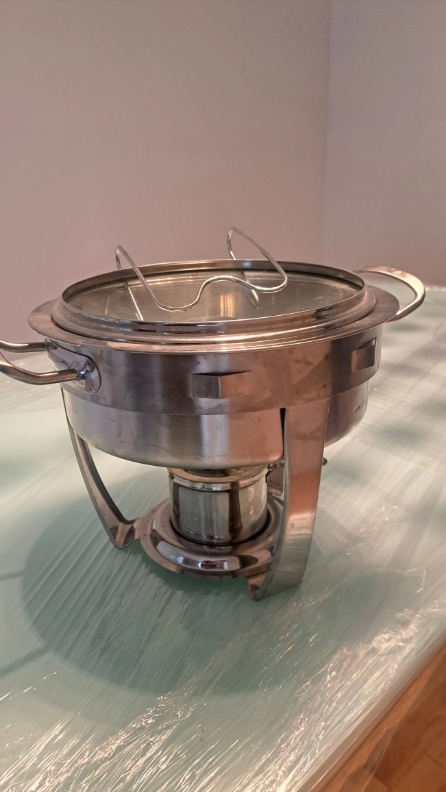 Selling a Tramontina chafing dish in good condition! It's perfect for keeping food warm at gatherings or events. The dish is made of stainless steel and comes with a glass lid.