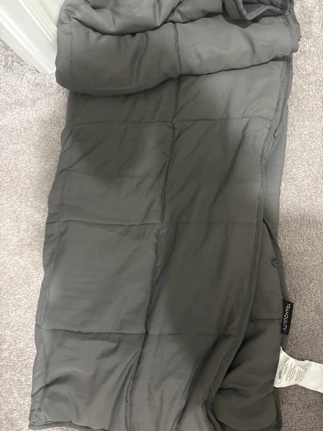 Selling a Tranquility weighted blanket in grey! It's in great condition and ready to help you relax. Perfect for cozy nights and stress relief