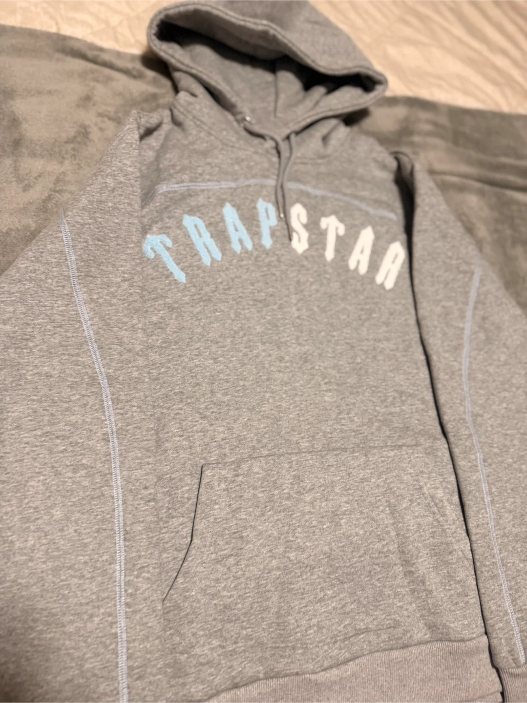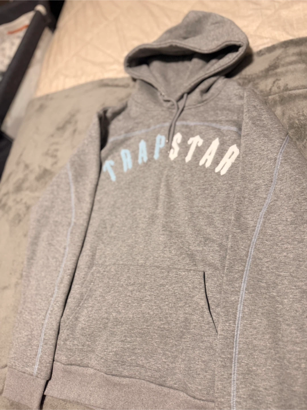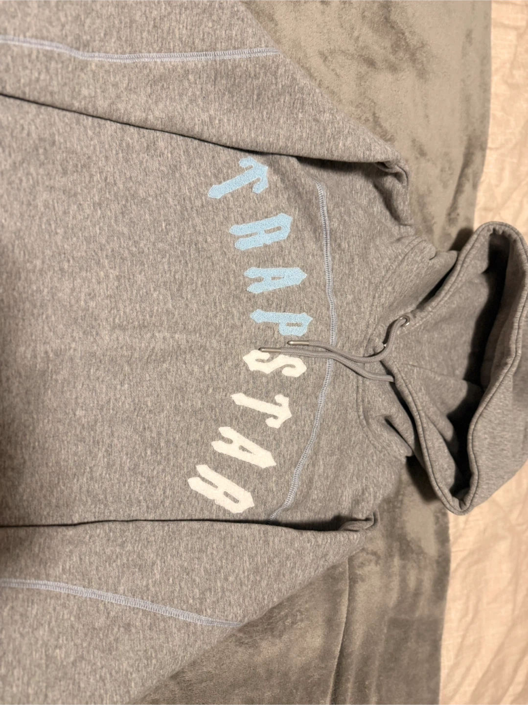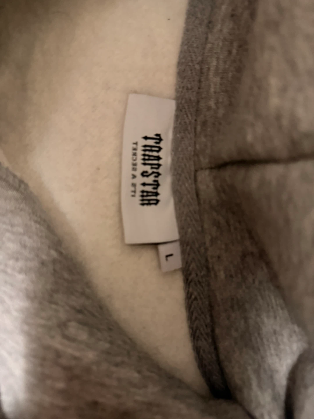 Selling a Trapstar hoodie in size L. It's a grey colour with the Trapstar logo across the chest. In good condition and ready for a new home!