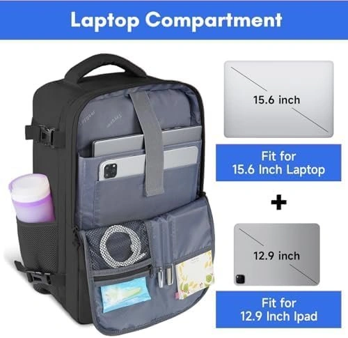 Travel Laptop Backpack, Airplane Approved Travel Backpack Suitcase For Men Women With Usb Charging Port, Lightweight College 35l Luggage Bag 15.6 inch Laptop Backpack Gifts For Casual Business, Black Reg 59.99 Size Large Roomy Capacity & Multi-Pocket: Dimensions 17*11*7inch Convenient Usb Port: travel backpack with built in USB charger outside and built in charging cable inside, carry on backpack flight approved offers you a more convenient way to charge your phone while walking. Flight Approved Laptop Black: Travel Backpack: 180 degree zipper closure helps you pass through the security check quickly. lightweight backpack for travel fits overhead ,Laptop backpack comes with carry handles on the top and sides