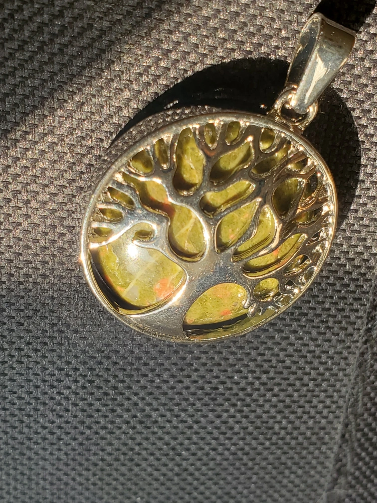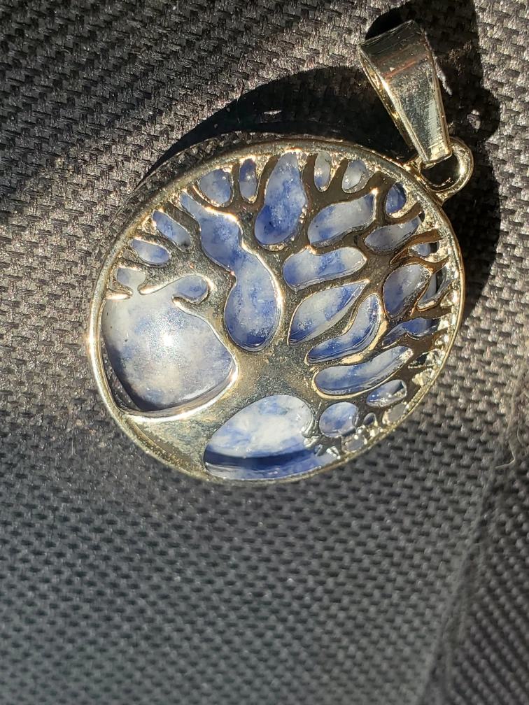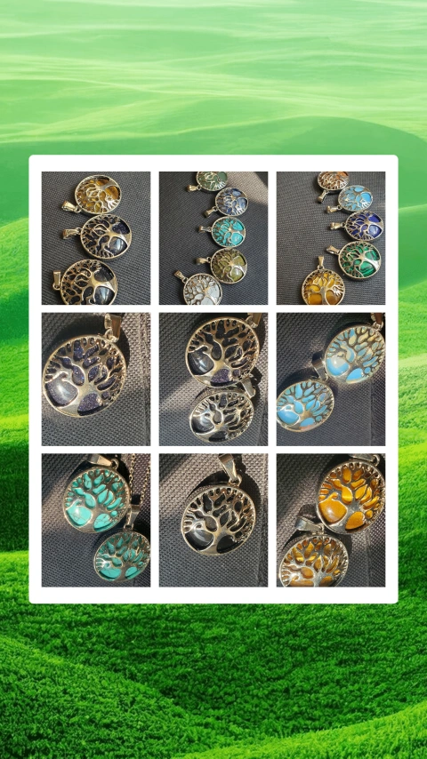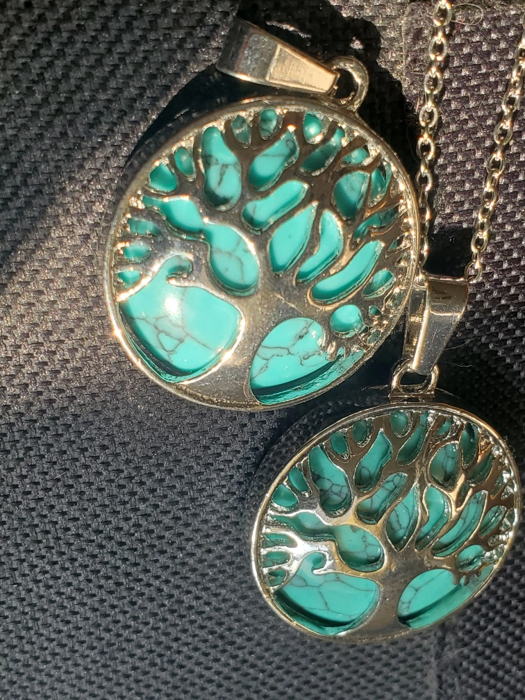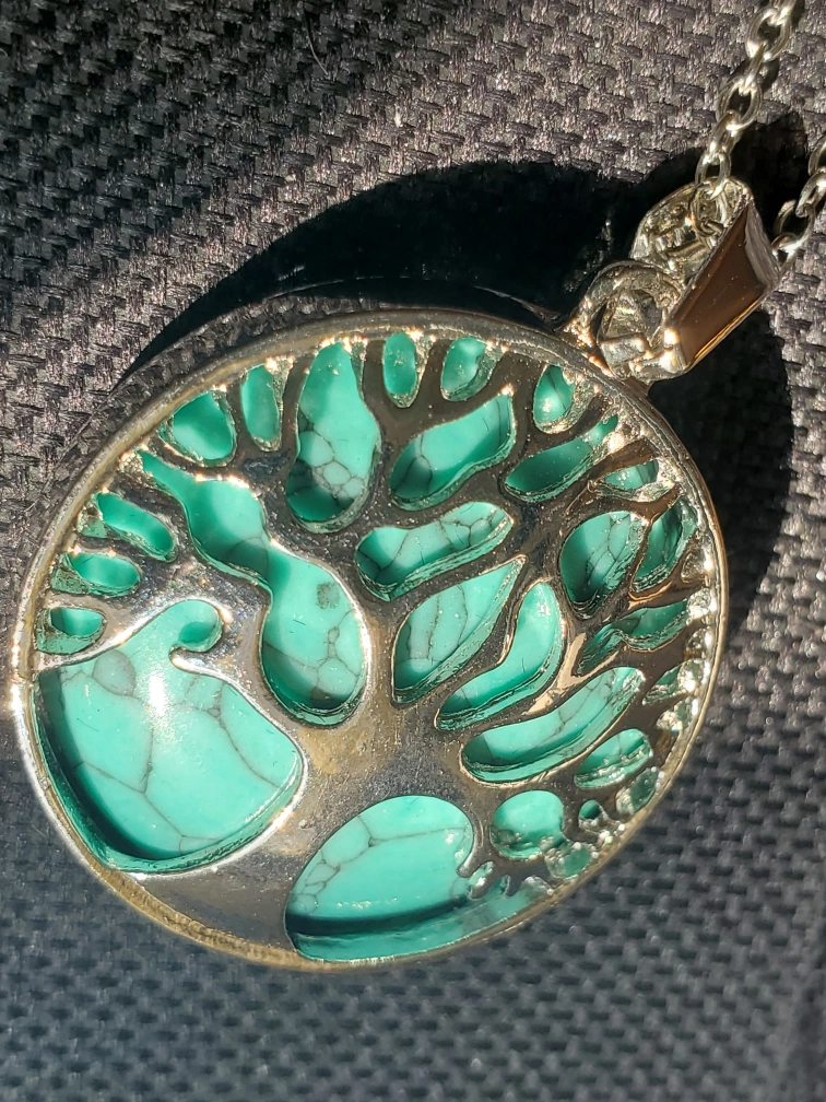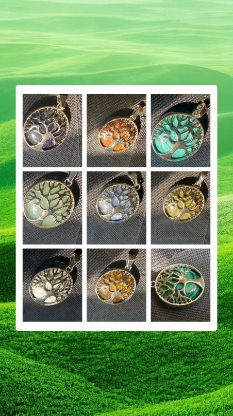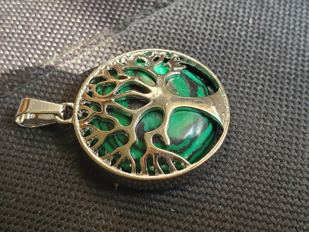 Tree of Life pendants $10 pendant only $12 with wax leather chain $15 with 45cm stainless steel chain Whats available: Sodalite 2 Tiger's eye 2 Blue Sandstone Gold Sandstone 2 Opalite Green Aventurine Malachite (Note: this is reconstituted malachite, and is made from crushed leftovers of the gemstone, mixed with dyes and resins) 2 Howlite (blue) Howlite (white) Unakite Lapis lazuli Obsidian The setting has zinc alloy, with the option of a 45 cm chain/1.5 mm width, either stainless steel lobster clasp or waxed leather with alloy lobster clasp, or just the pendant. Pick up cawthra and Lakeshore mississauga