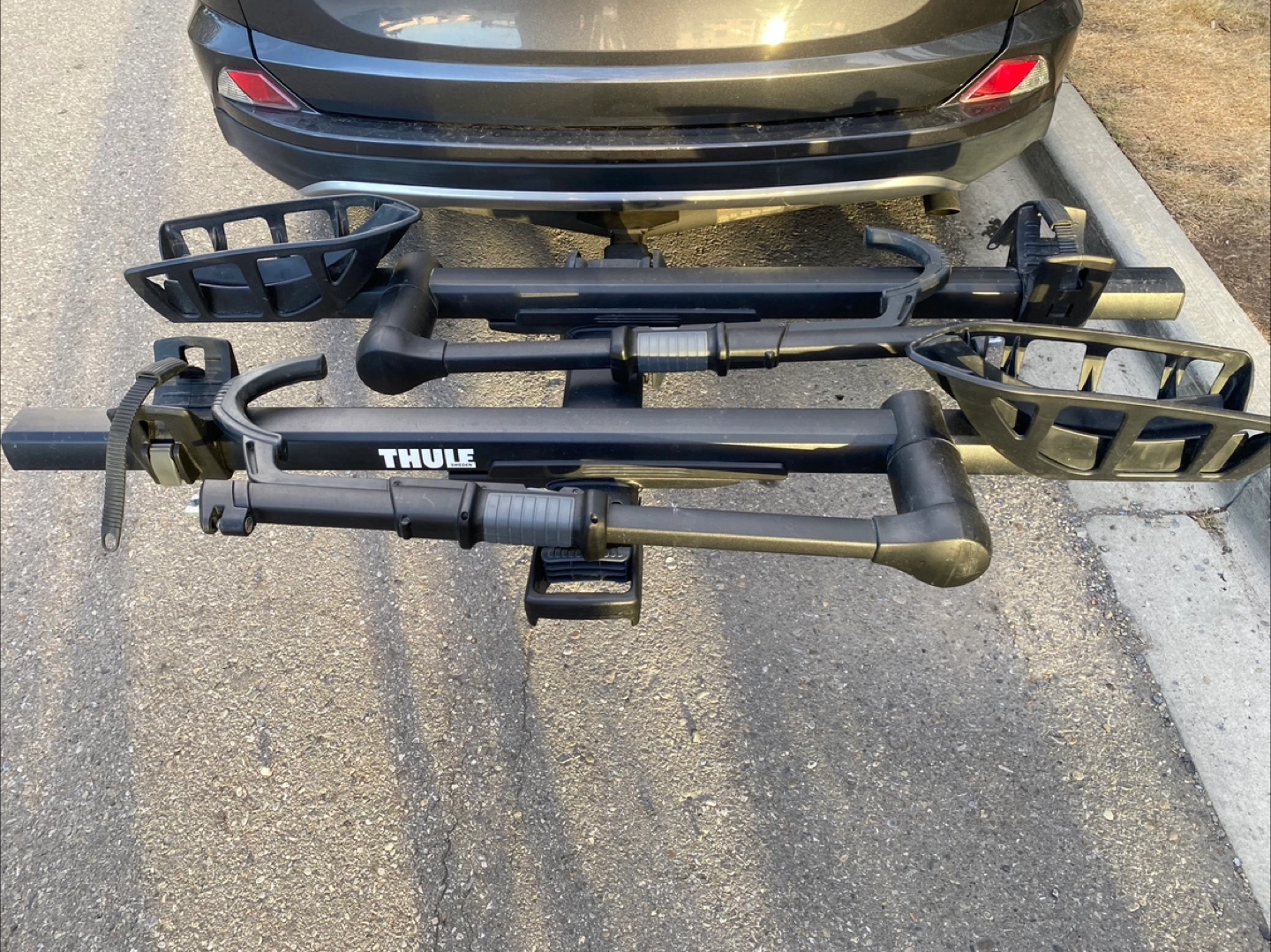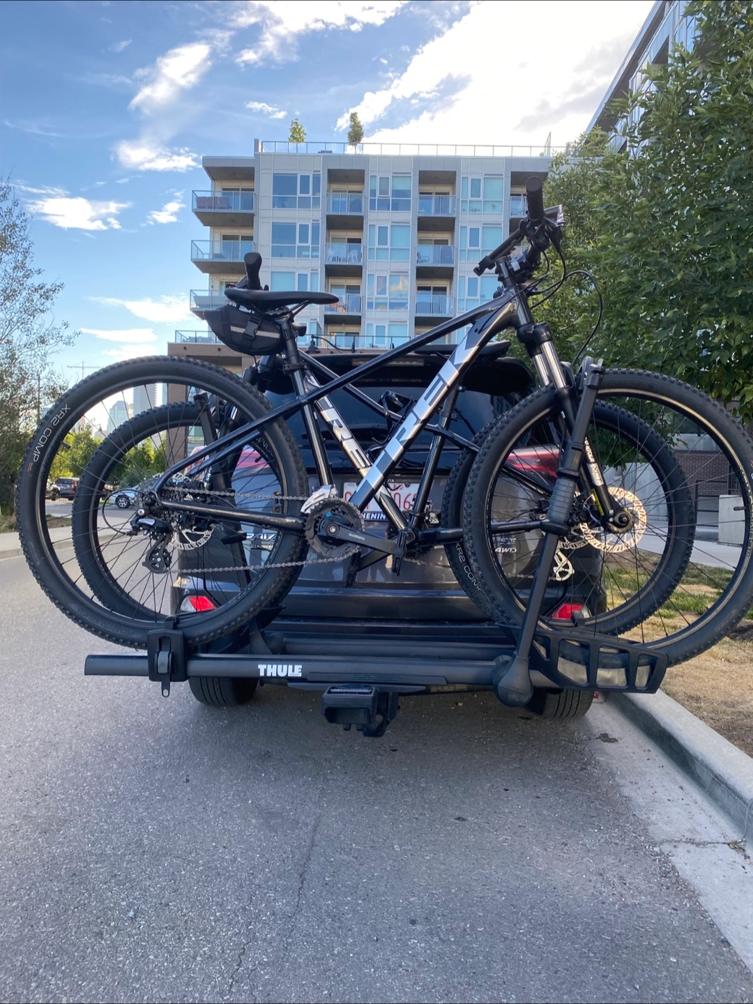 Bike Package - $1500 Selling two Trek 2022 Marlin 5 mountain bikes in excellent condition, both equipped with essential accessories. Selling as a full package only - not selling separately. 1. Trek 2022 Marlin 5 - 29" Wheel, Size M (Mint condition) 2. Trek 2022 Marlin 5 - 27.5" Wheel, Size S (Mint condition except for a small tear near the saddle) Each bike comes with: • Bontrager bottle cage • Bell • Front and rear lights Extras included (one of each): • Heavy-duty lock (can lock both bikes at once) • Saddle bag • Smartphone holder • Bontrager Charger Floor Pump • Smith Convoy MIPS helmet - Size M, Black & Sage color Thule Bike Rack + YardStash Bike Cover - $800 Selling a Thule T2 Pro XTR 2-Bike Rack (2" hitch, black) + YardStash XXL Waterproof Bike Cover (unused) as a bundle. Both items are in excellent condition. Thule T2 Pro XTR Features: • Fits 20" to 29" wheels, up to 5" tires - suitable for road, mountain, fat-tire, and e-bikes • Integrated cable lock and lock knobs • Tilts for rear vehicle access (HitchSwitch lever) • Integrated wheels for easy transport • Tool-free AutoAttach system • Holds bikes up to 60 lbs each YardStash XXL Bike Cover: • Used once • Waterproof and weatherproof • Fits bikes, trikes, 29ers, and e-bikes • Reflective, heavy-duty green tarp Price: Trek Bike Package - $1500 Thule Bike Rack + YardStash Bike Cover - $800 Or $2000 for both .