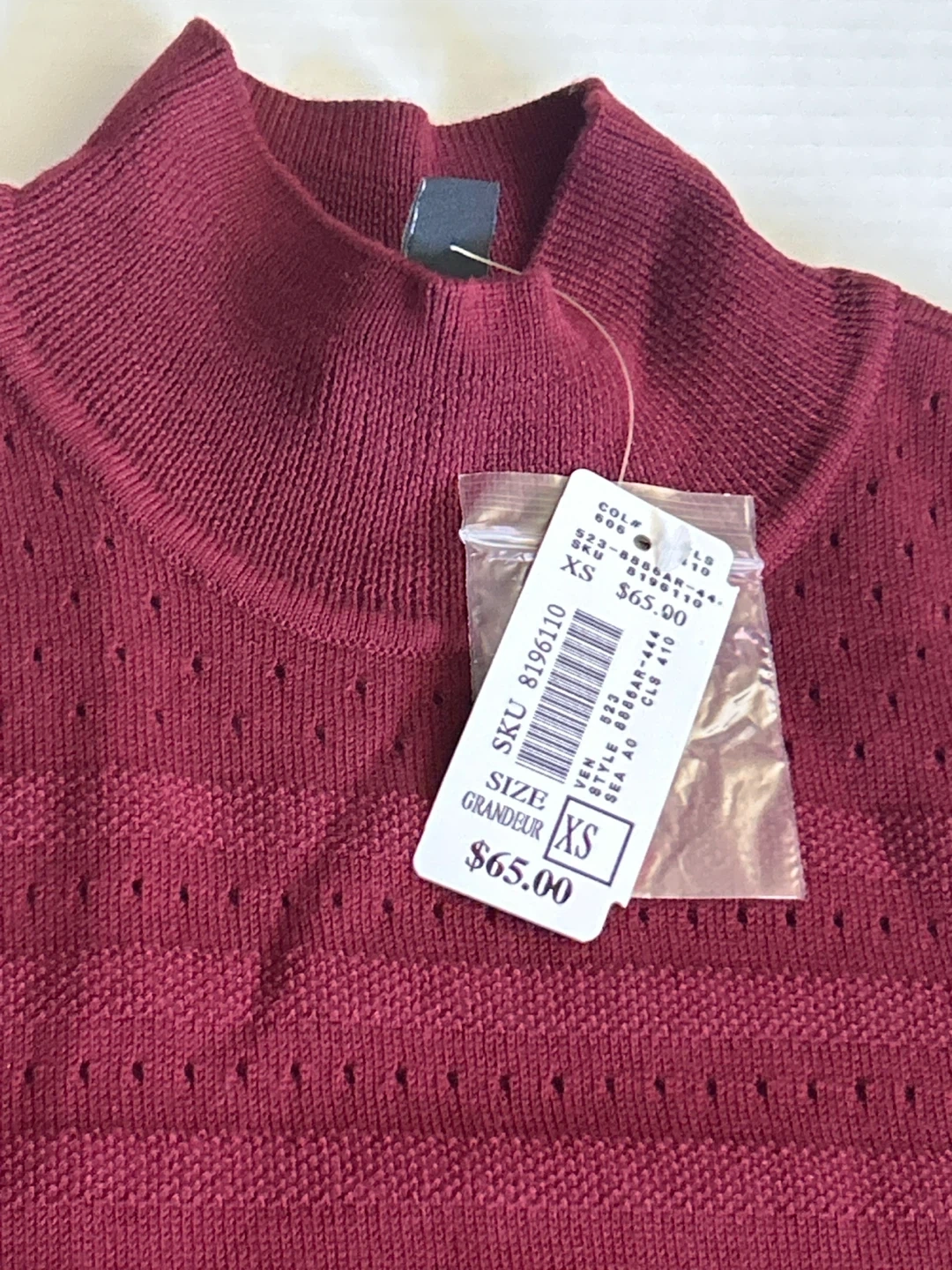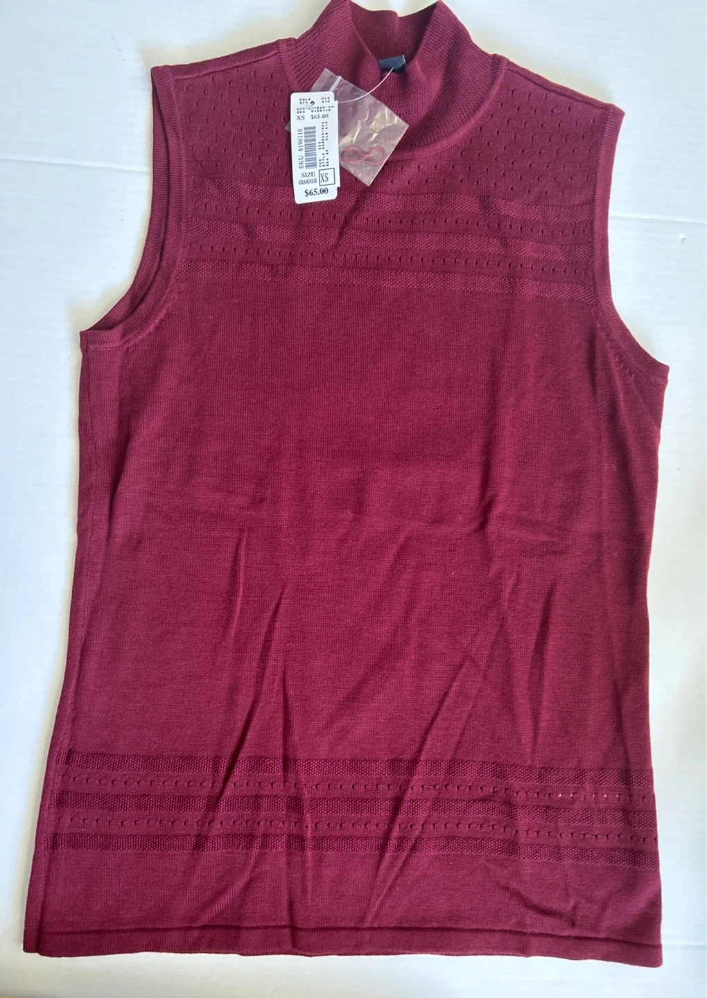 This is a Tribal sleeveless mock neck top in size XS. It's a beautiful burgundy colour and in excellent condition with tags still attached! Originally priced at $65.00. Check all photos please. Smoke/Pet free home. Cash & pick up only.