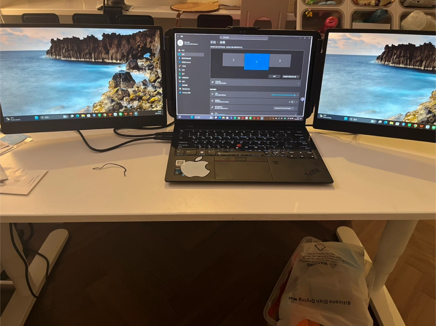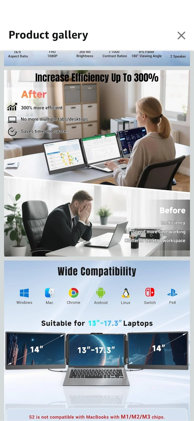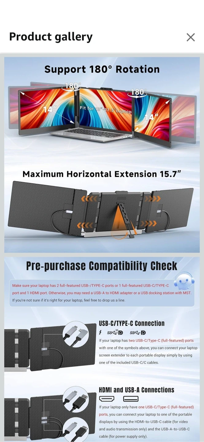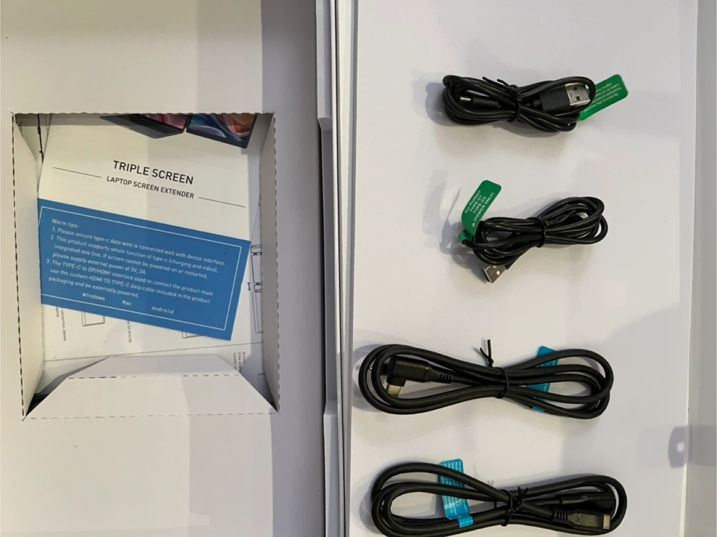 Selling a triple screen laptop screen extender! It comes with all the necessary cables and the original box. Perfect for increasing productivity while working from home or on the go. It easily attaches to your laptop, providing a seamless multi-screen experience