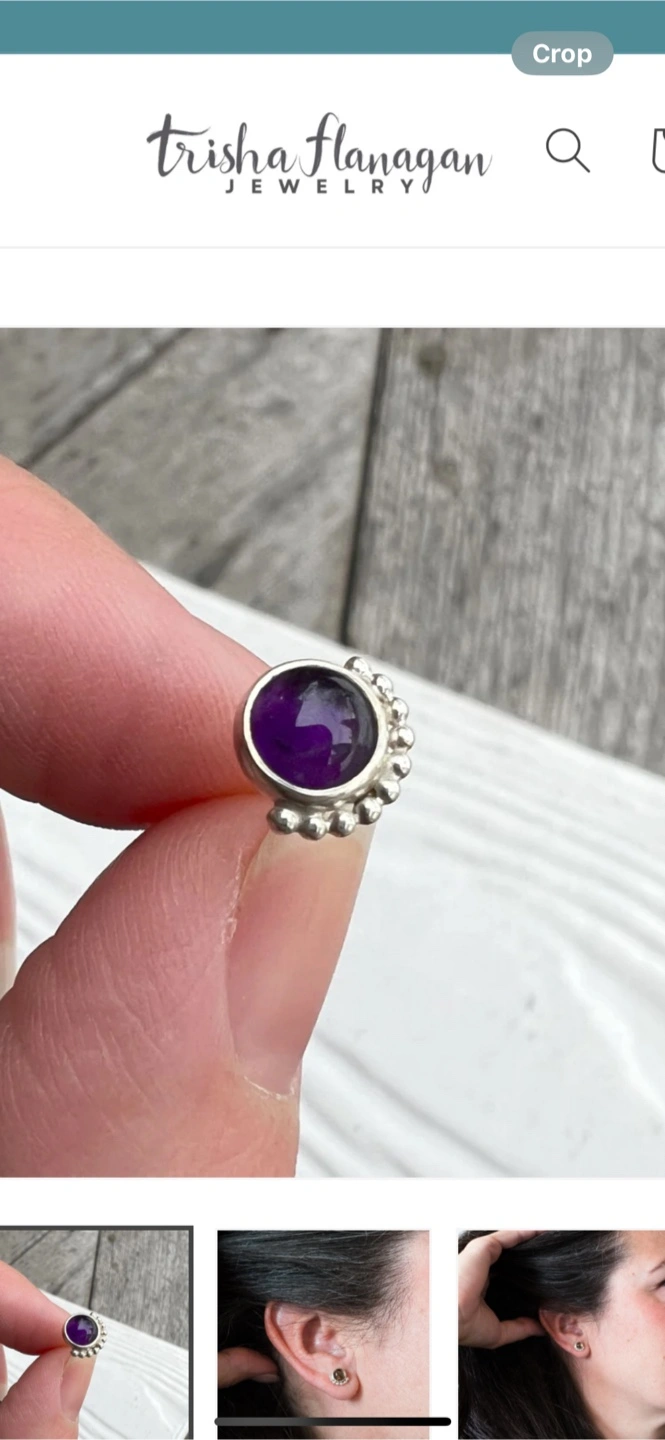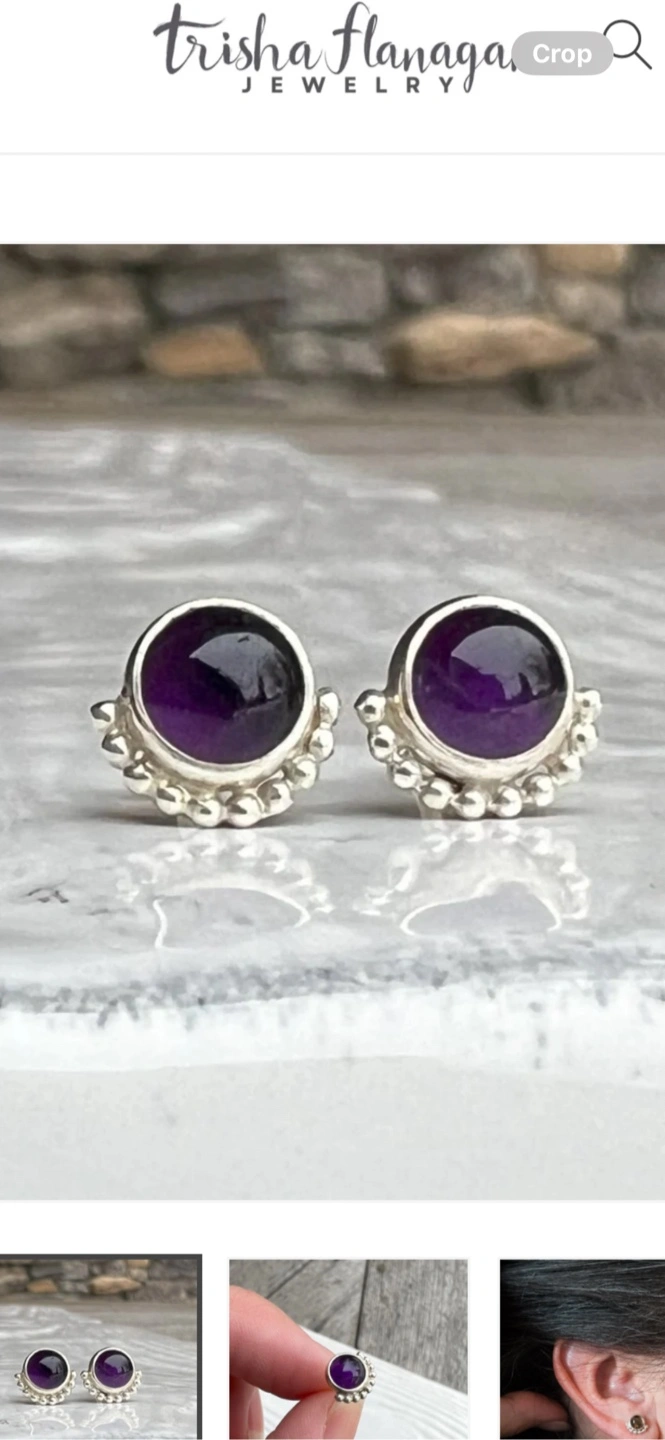 These are Trisha Flanagan stud earrings featuring a lovely amethyst purple stone. Also sterling silver. Hypoallergenic Premium Sterling Silver: Crafted from high-quality sterling silver, these earrings offer durability and timeless polished beauty without causing any allergic reactions. • Minimalist & Versatile Design: The sleek and simple style complements any outfit-perfect for both everyday wear and special occasions. • Thoughtful Gift Option: Ideal for February-born loved ones or anyone who adores Amethyst • Handmade Excellence: This pair is carefully handcrafted top-notch craftsmanship. • and includes an extra pair of sterling silver earring backs for added value. • Amethyst earrings radiate calm and positivity with every wear. They're in great condition and ready to add a pop of colour to your jewellery collection! Originally bought for $90 CAD selling for 20