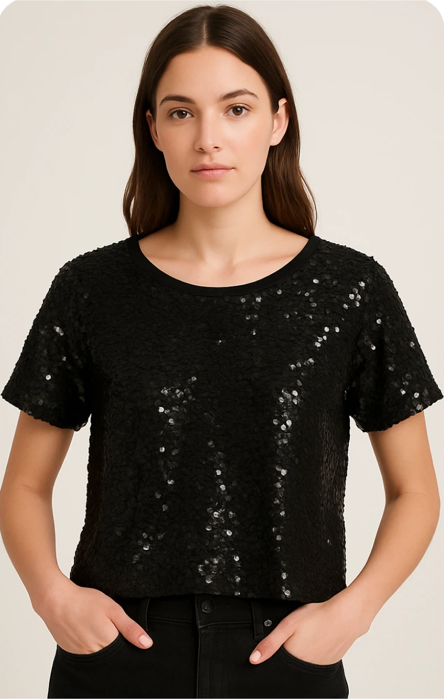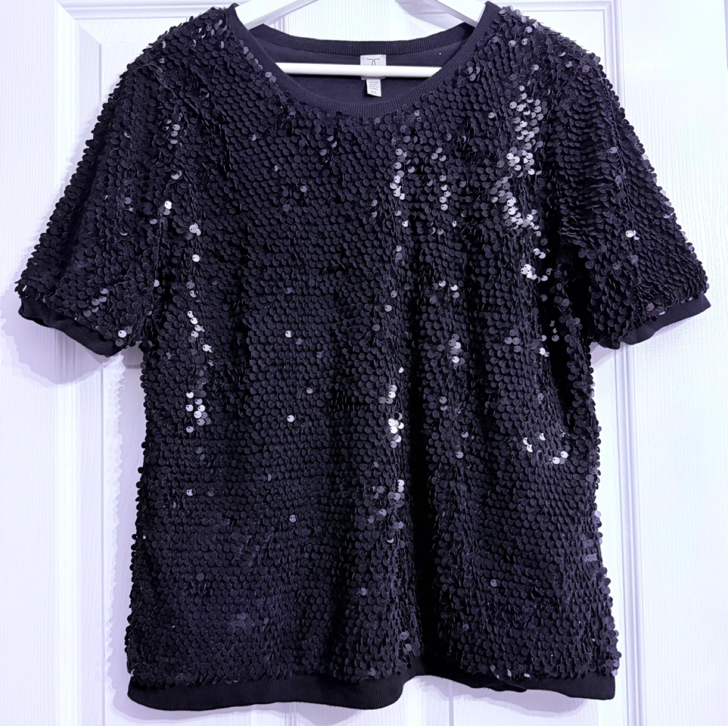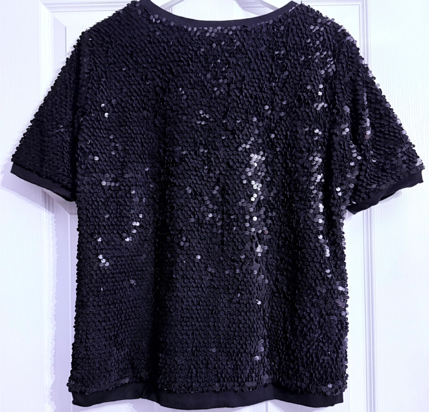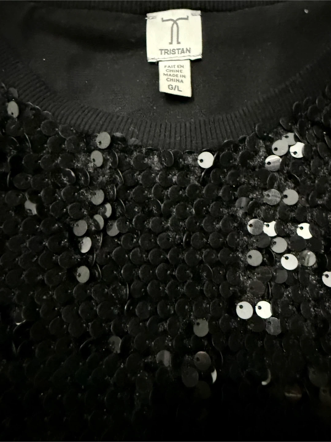 This is a lovely black sequin top from Tristan! It's a size G/L. Perfect for adding a bit of sparkle to your outfit Ptp 23” Length 25”