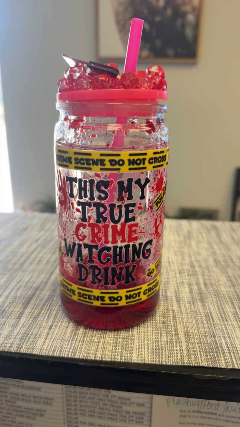 This tumbler is perfect for anyone who loves true crime! It's decorated with a "Crime Scene Do Not Cross" tape design and has a fun, spooky vibe for your favourite drink Comes with a custom matching lid.