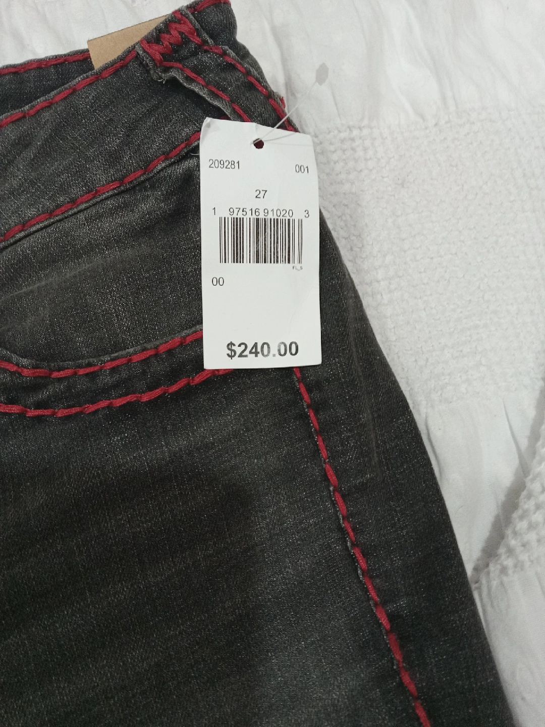 Brand New !! still has tags!! True Religion Becca mid-rise bootcut jeans in size 27! These jeans feature a stylish design with red stitching accents. originally $240 selling for $150