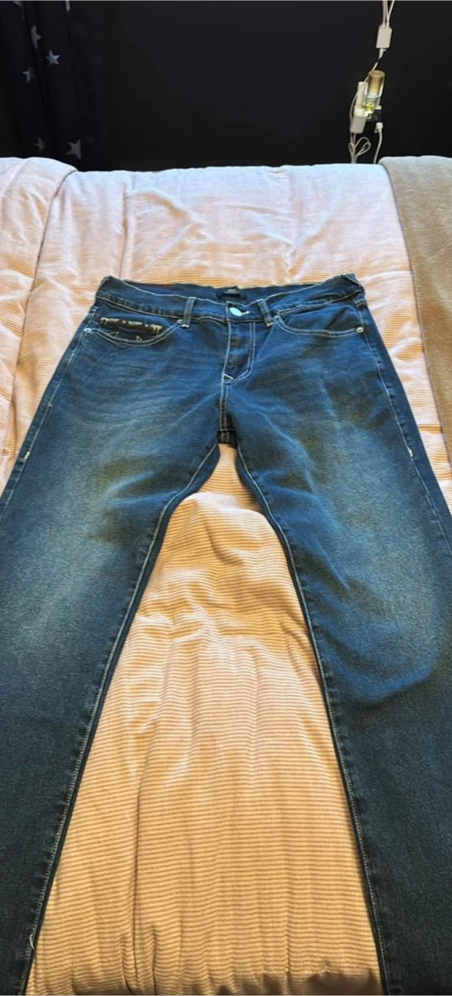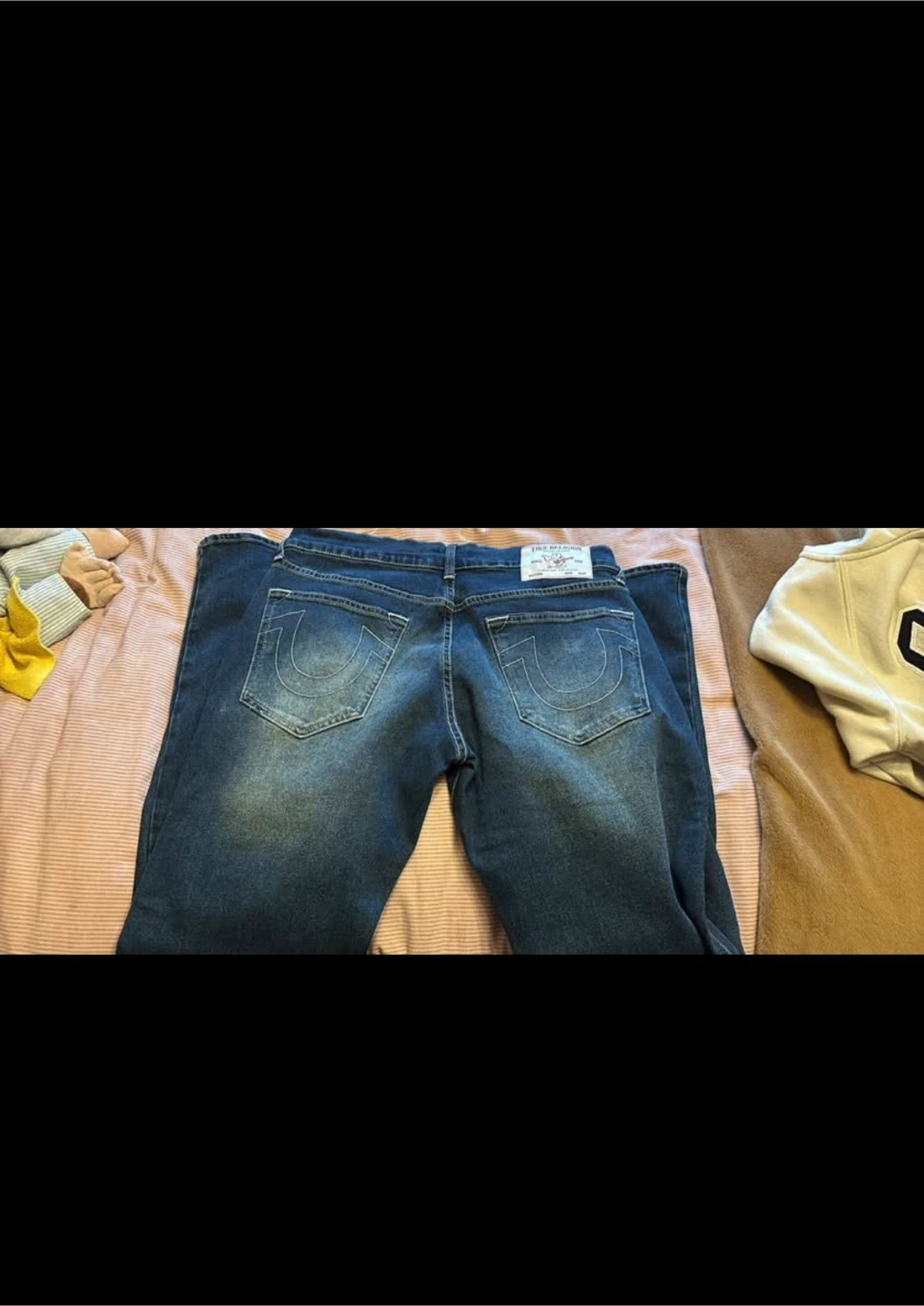 Selling a pair of True Religion jeans in a dark wash. They are in great condition and ready for a new home. Perfect for a casual or dressed-up look!