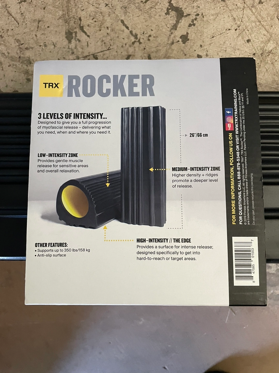Selling a TRX Rocker foam roller in excellent condition! It features 3 levels of intensity designed to give a full progression of myofascial release. - Low intensity zone provides gentle muscle release - Medium intensity zone has higher density ridges that promote a deeper level of release - High intensity edge is designed specifically to get into hard-to-reach or target areas It supports up to 350 lbs/158 kg and has an anti-slip surface