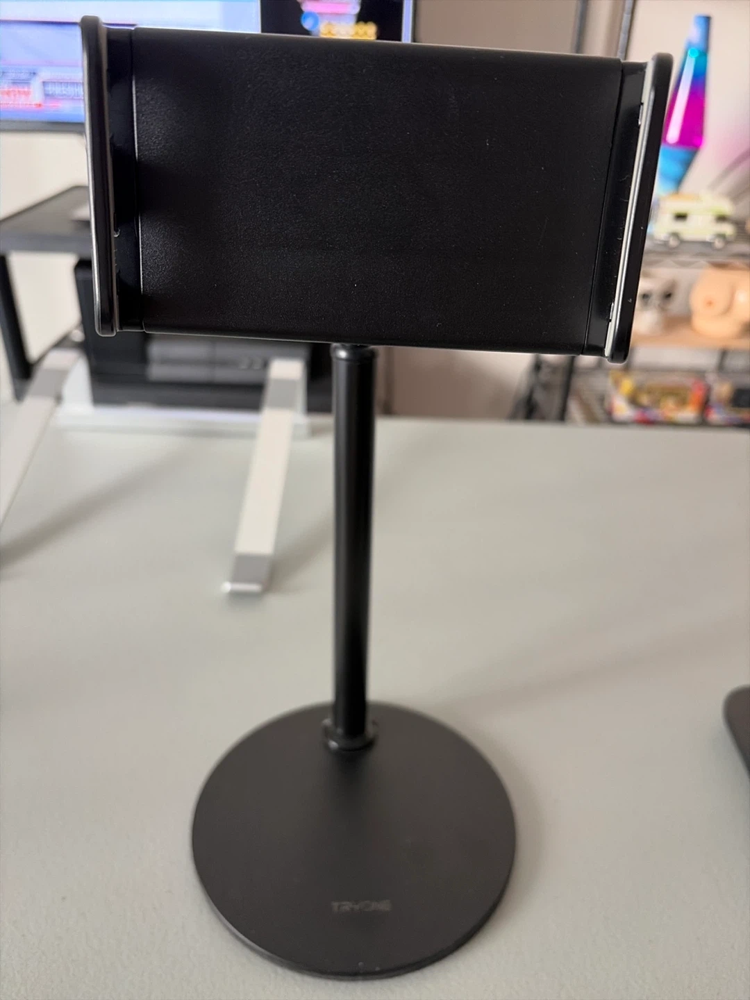 Selling a Tryone phone holder stand in black! It's perfect for holding your phone while you watch videos or video chat. It's in great condition and ready for a new home