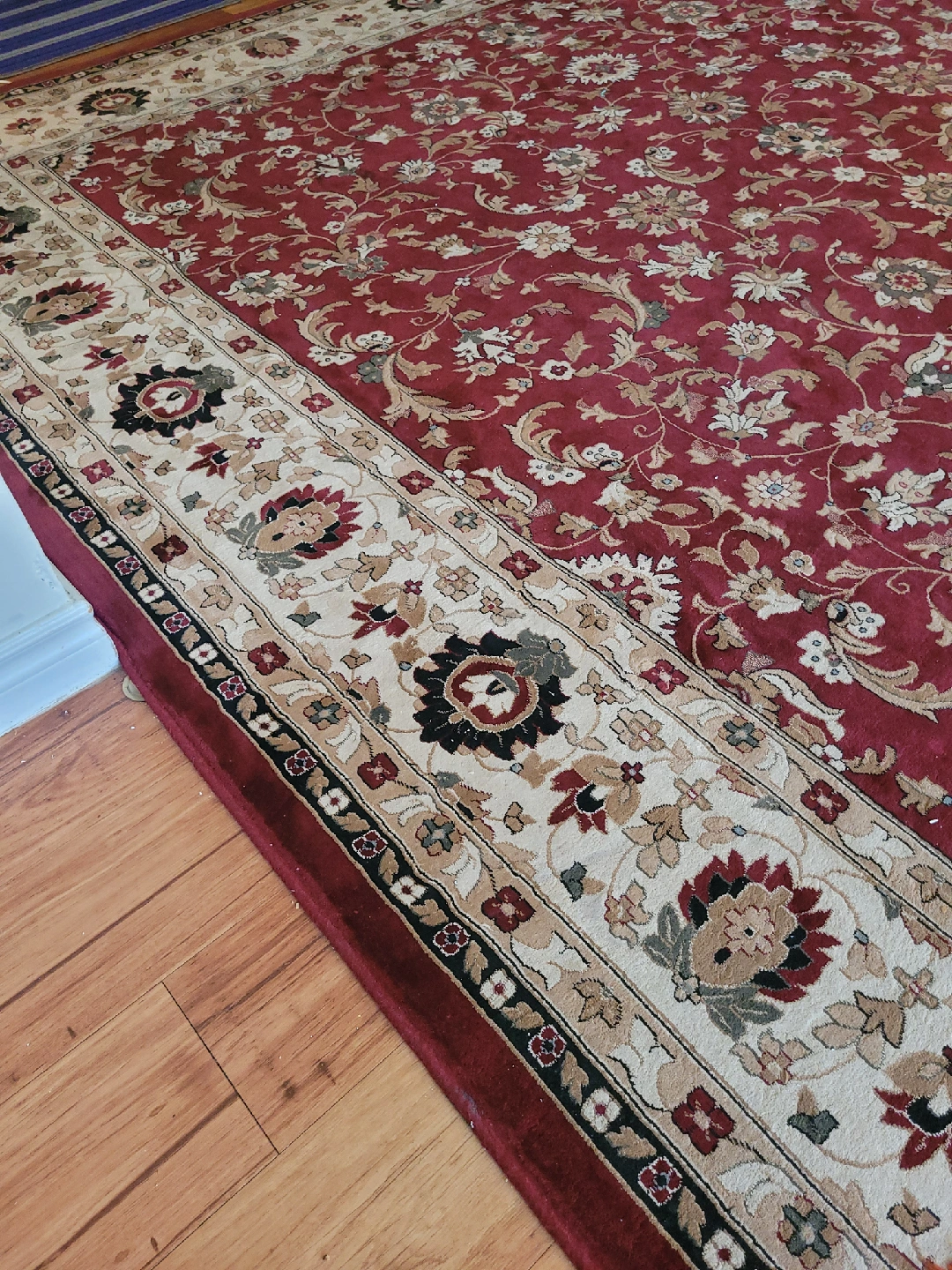 This is a TTT Collection area rug in red and cream. The design is 2905A. It's sized at 300x400cm. It is made in Turkey and is a PP Machine-Made Heatset Carpet good condition, pet free home.