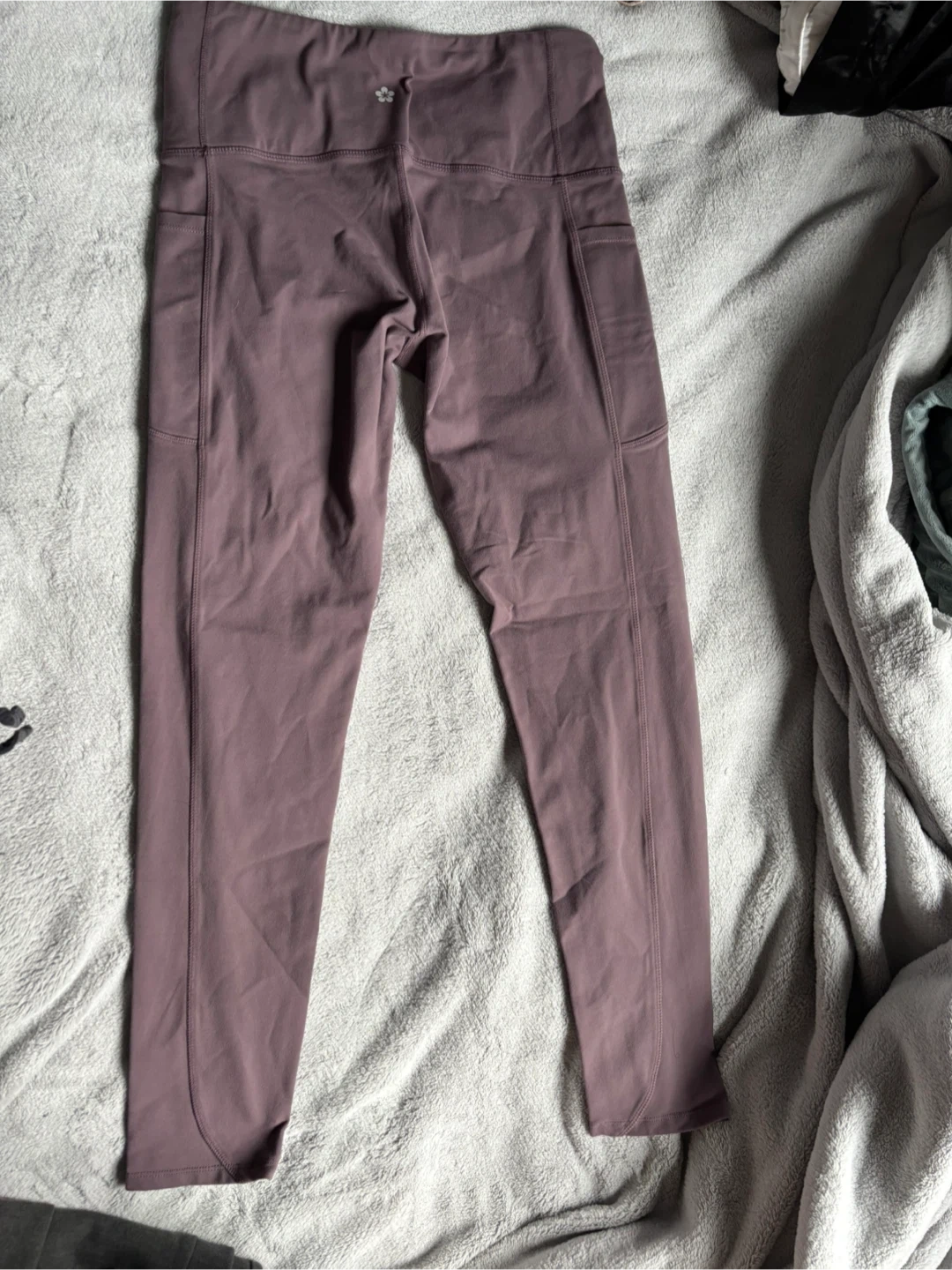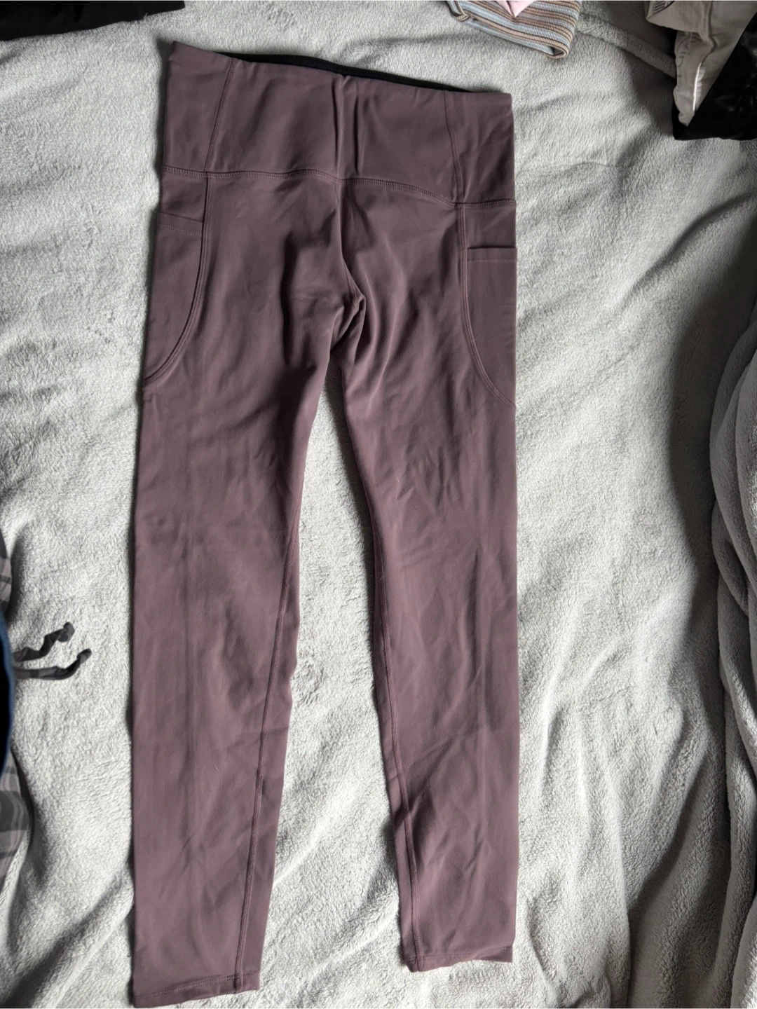 Selling a pair of Tuff Athletics leggings in size medium. They are a lovely mauve colour and have pockets on the sides!