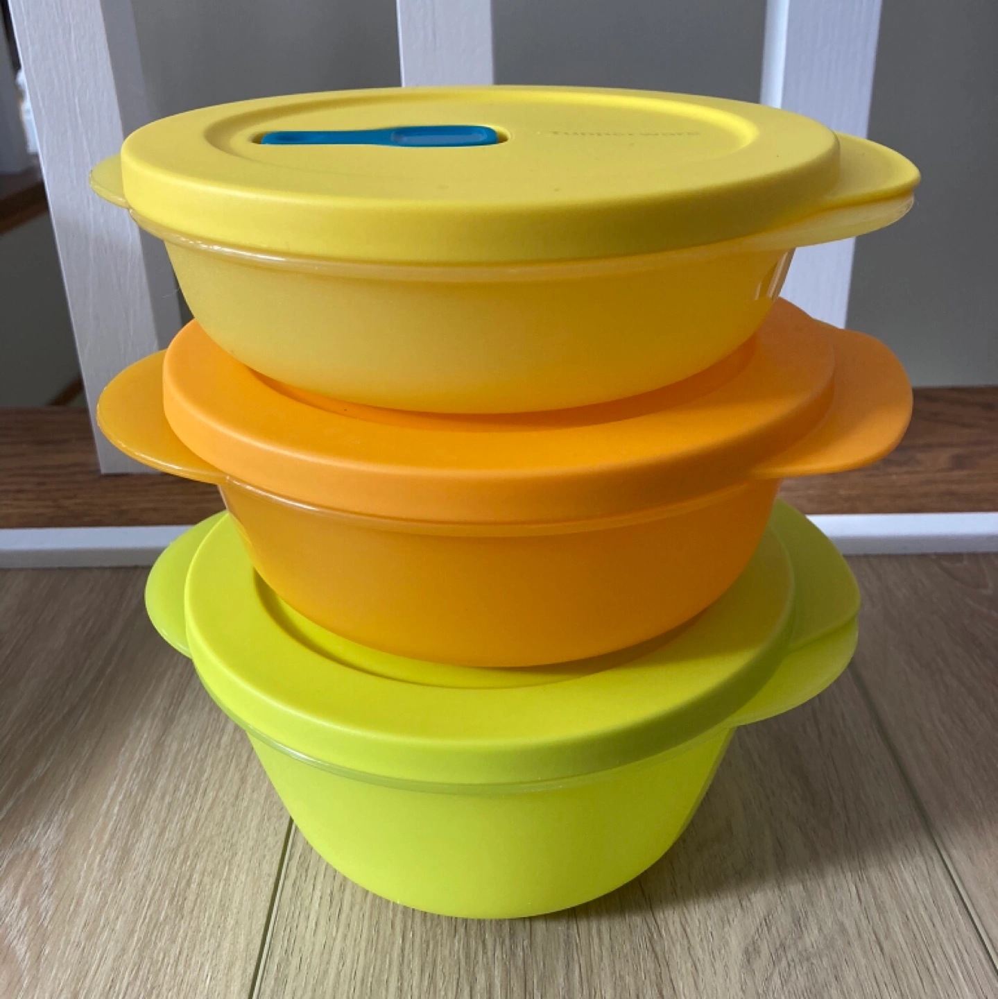 We just moved and it’s time to clear out some things we’re not using. This 3 piece Crystal Wave set is in good used condition (some scratches inside bowls from useage). Set includes 1 3/4C, 2 1/2C and 3 1/2C sizes. Asking $15 (save tax and shipping costs) for a sold out product on the Tupperware website. Costs $52 new (clearance price was $20). Cross posted. Link below for more details (colours are different). https://www.tupperware.ca/products/crystalwave-plus-3-piece-set-aruba?_pos=19&_sid=51d454a52&_ss=r