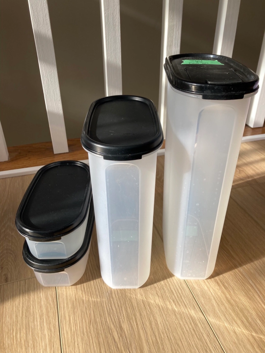 We recently moved and it’s time to clean out some of the Tupperware we’re not using. This set of ovals is in good used condition. Sizes 5, 4 and x2 size 1s. One flip lid seal. Asking $30 all in - $60 new on sale on Tupperware website. Cross posted. More details re: size in link below. https://www.tupperware.ca/collections/dry-storage
