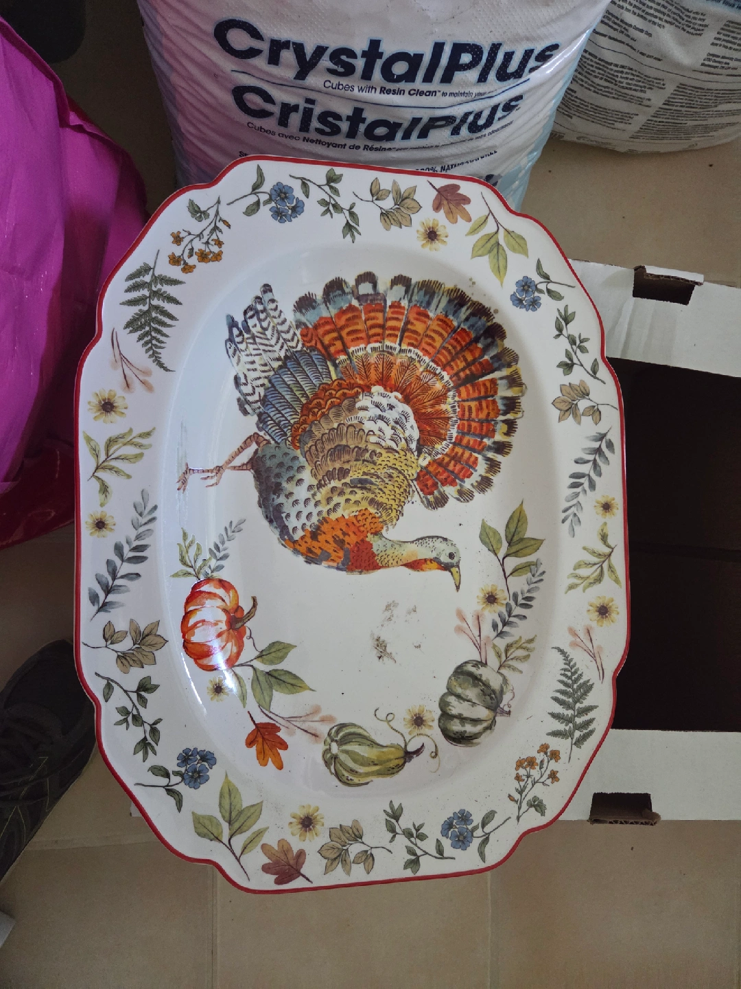 Festive platter with a turkey and pumpkin design, perfect for Thanksgiving or fall gatherings! It's in great condition and ready to add some charm to your table