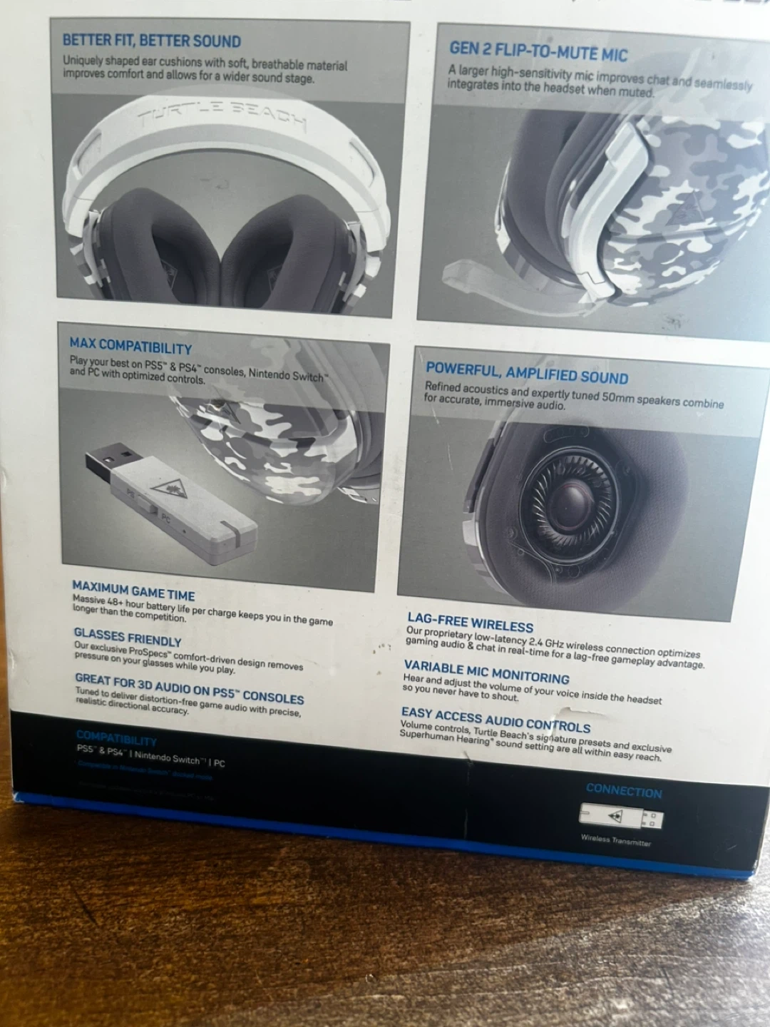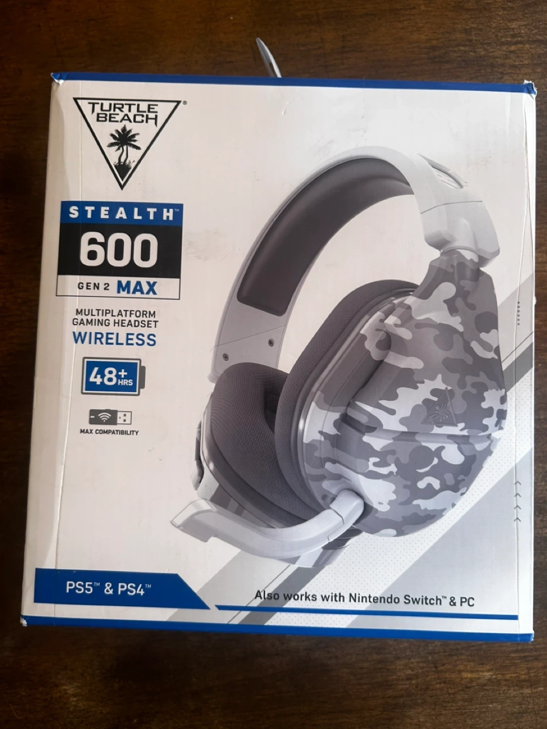 Selling a Turtle Beach Stealth 600 Gen 2 MAX wireless gaming headset! It's multiplatform compatible, working with PS5, PS4, Nintendo Switch, and PC. It features 48+ hours of battery life, glasses friendly design, and lag-free wireless for a great gaming experience. The headset also has a Gen 2 flip-to-mute mic and variable mic monitoring. Box included! Reason for selling: bought it for the wrong console/ not Xbox compatible