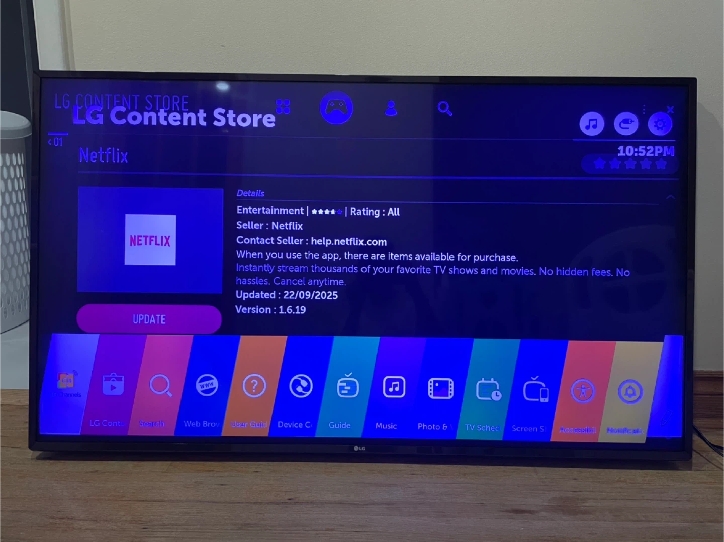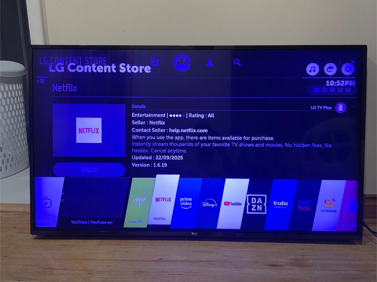 It’s Tv 55” LG Smart with remote Note - display is slightly getting bluish colour. It’s used and working condition Work with wifi - you tube, Netflix Broken tv own legs Cash and pickup Location- brimley and Lawrence Delivery available if possible only with fee Thank you