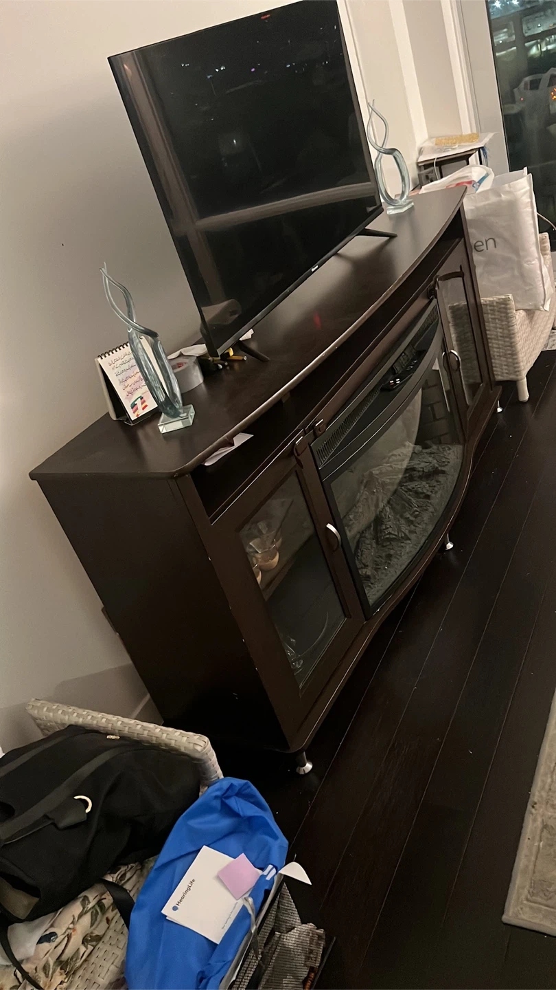 Selling a TV stand with an integrated electric fireplace! It's a great way to add some warmth and ambiance to your living room. The stand is in good condition and has plenty of space for your media devices and accessories