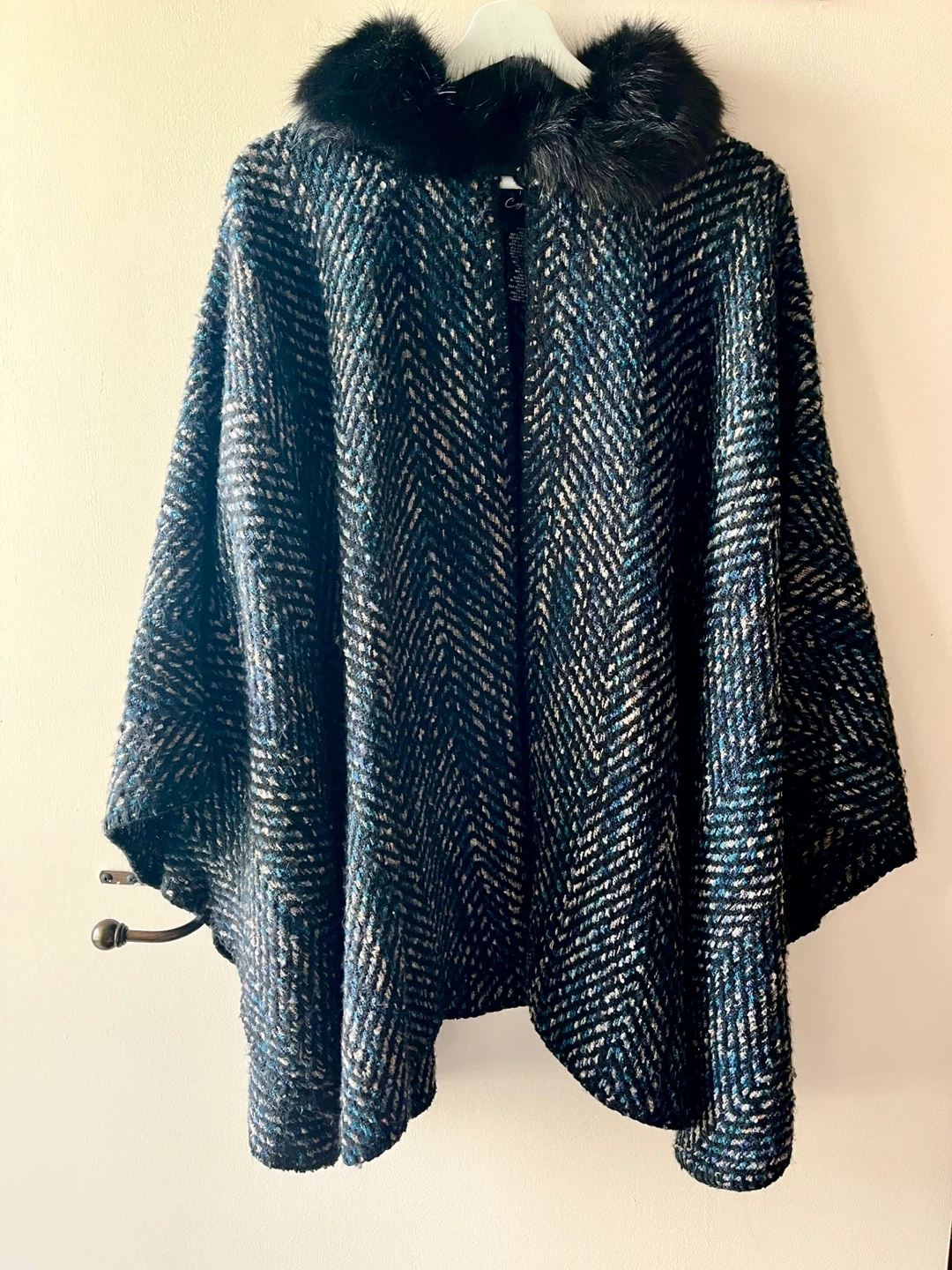 Show allTweed Cape/ Poncho with Faux Fur Collar