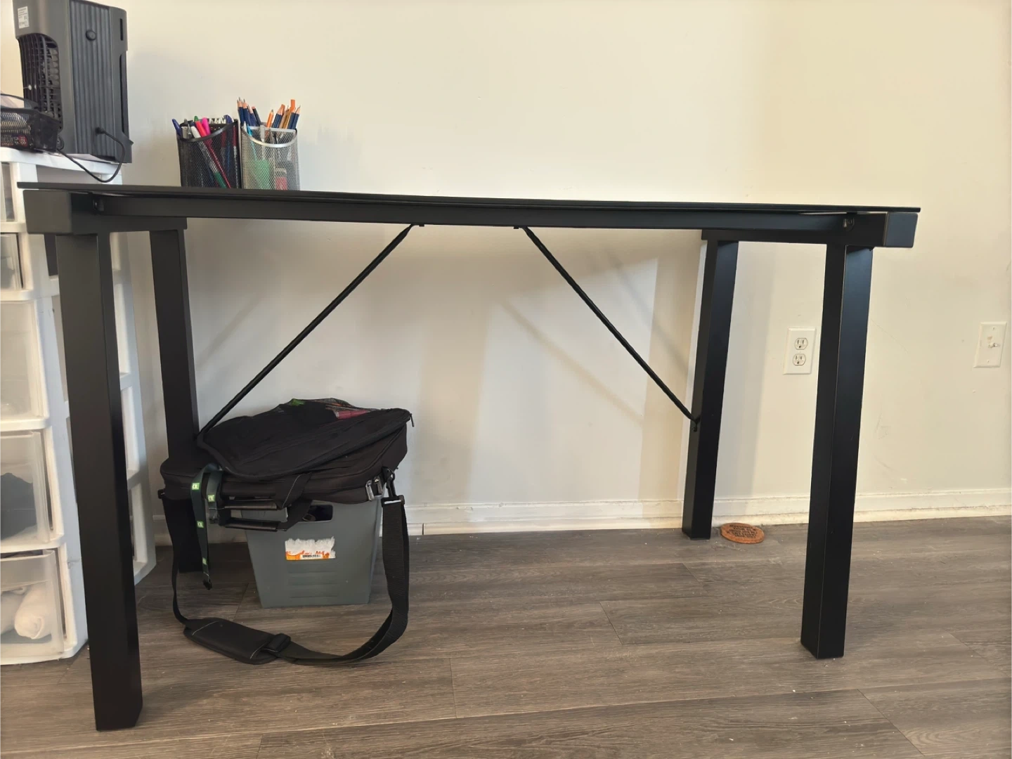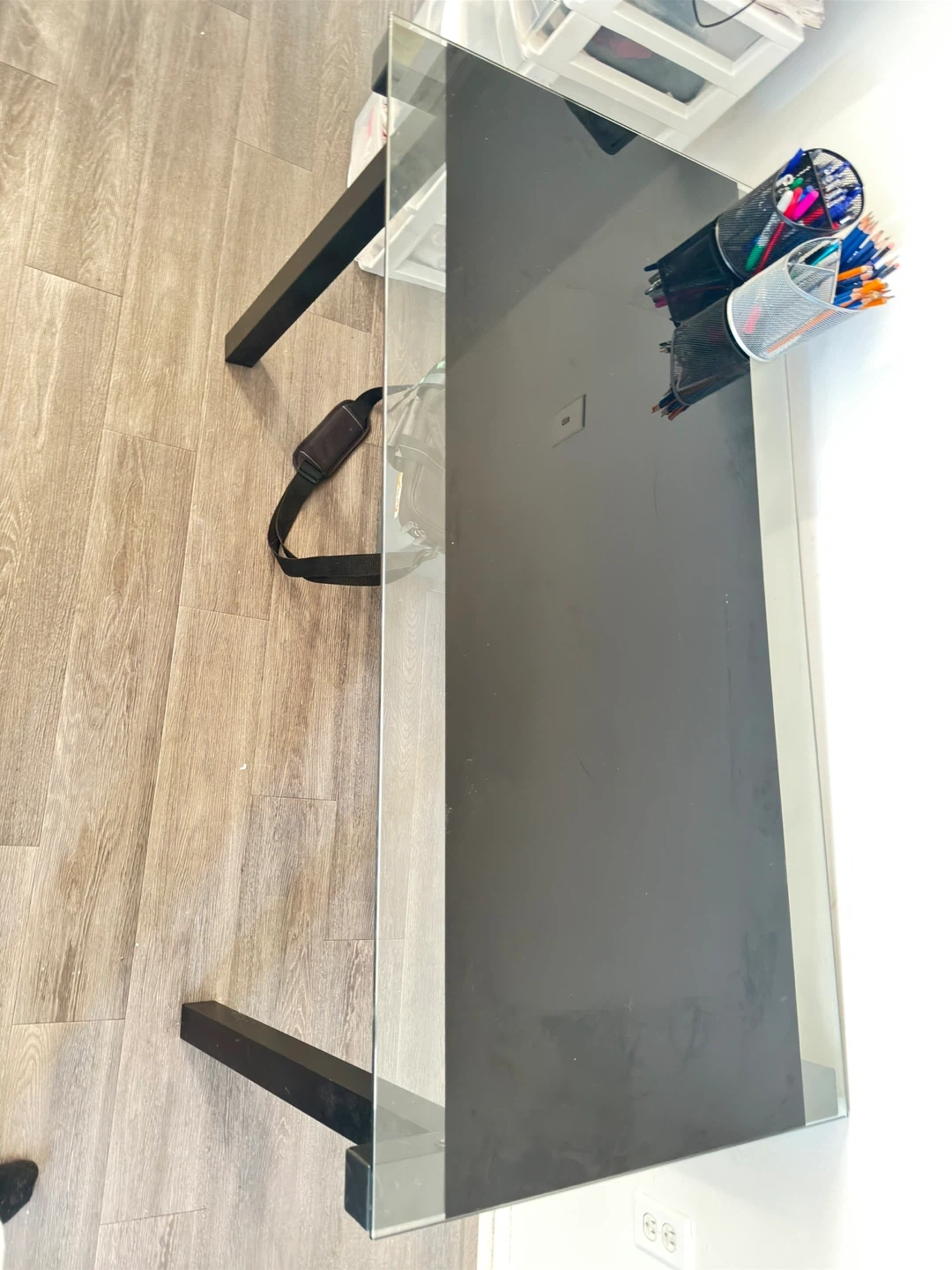 Need gone one Selling two sleek black desks with a glass top. It's in great condition and would look great in any home office or workspace. The black frame is sturdy and the glass top is easy to clean. It's a simple, modern piece of furniture that's both stylish and functional