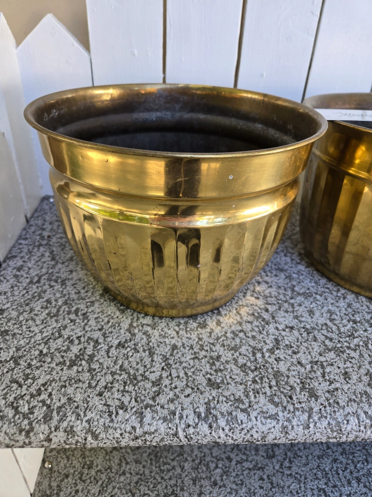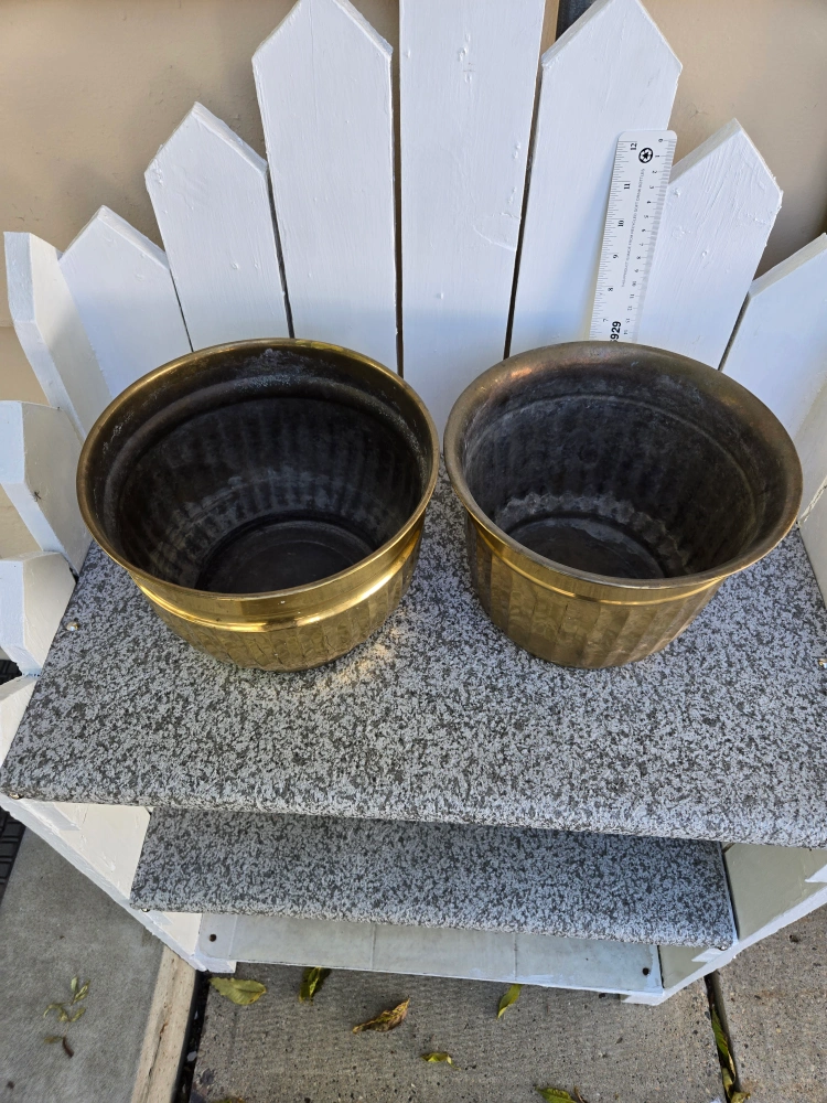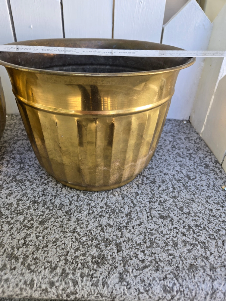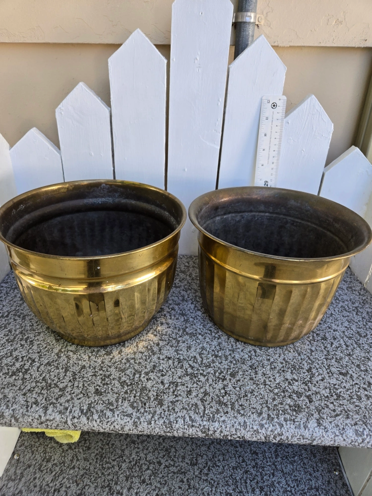 Selling two brass planters. $15 EACH.They are around 10 inches in diameter and 6.6 inches high. They have some signs of use but are in good condition.