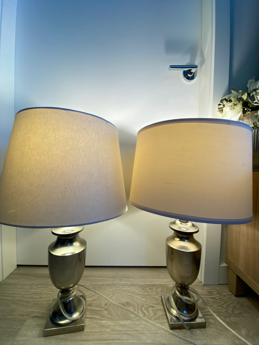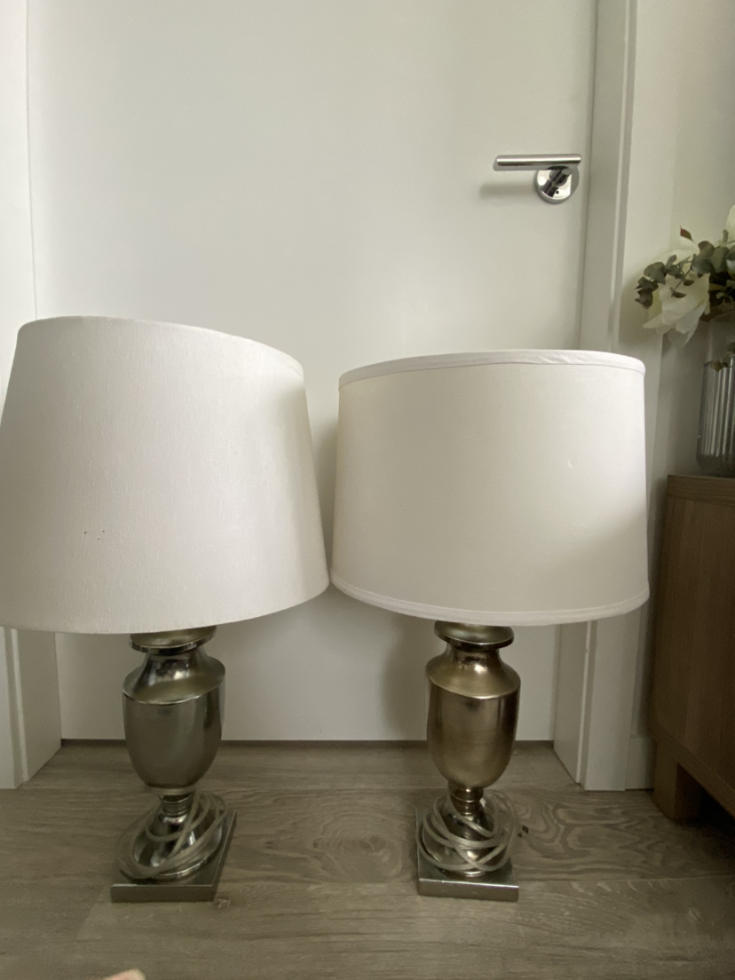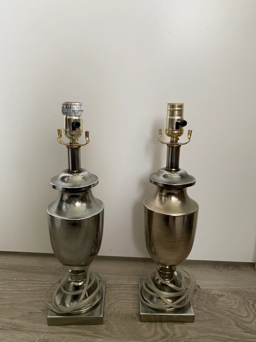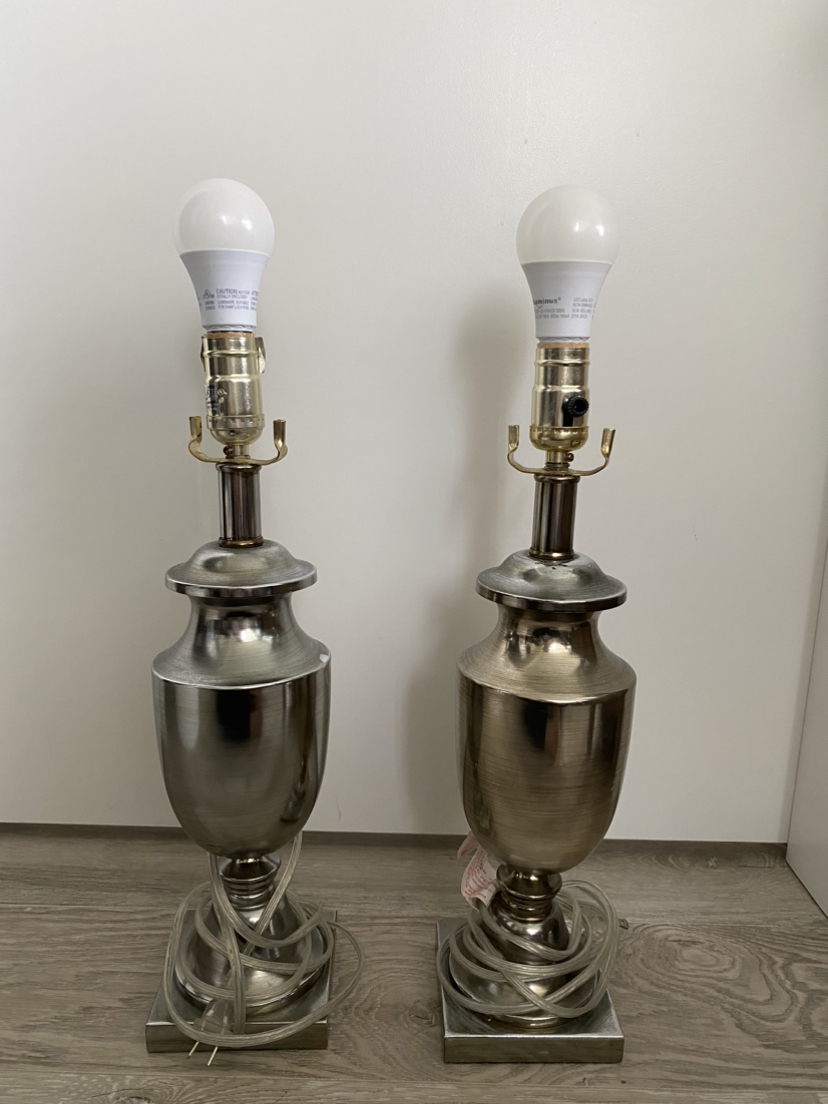 Two brushed chrome table lamps Bulb included Lamp shades not in best shape, but doesn’t interfere with function Shades can be easily replaced for cheap Open to reasonable offers No pet no smoking household Pick up near Holdom station preferred, but can arrange to meet elsewhere depending on the area