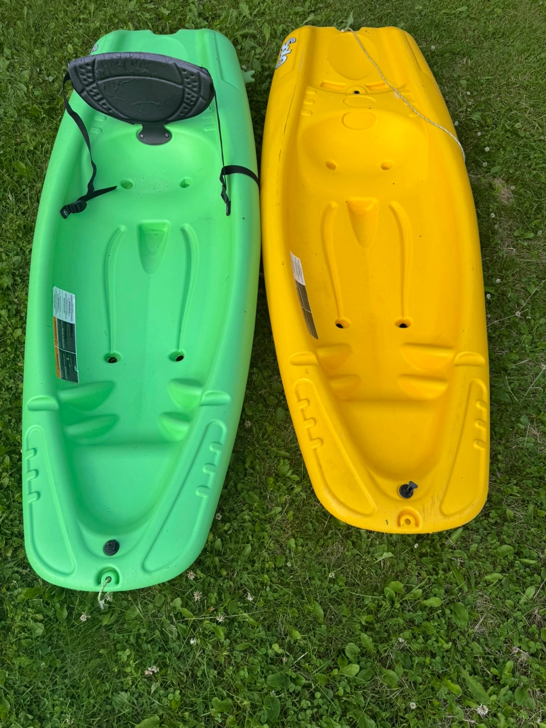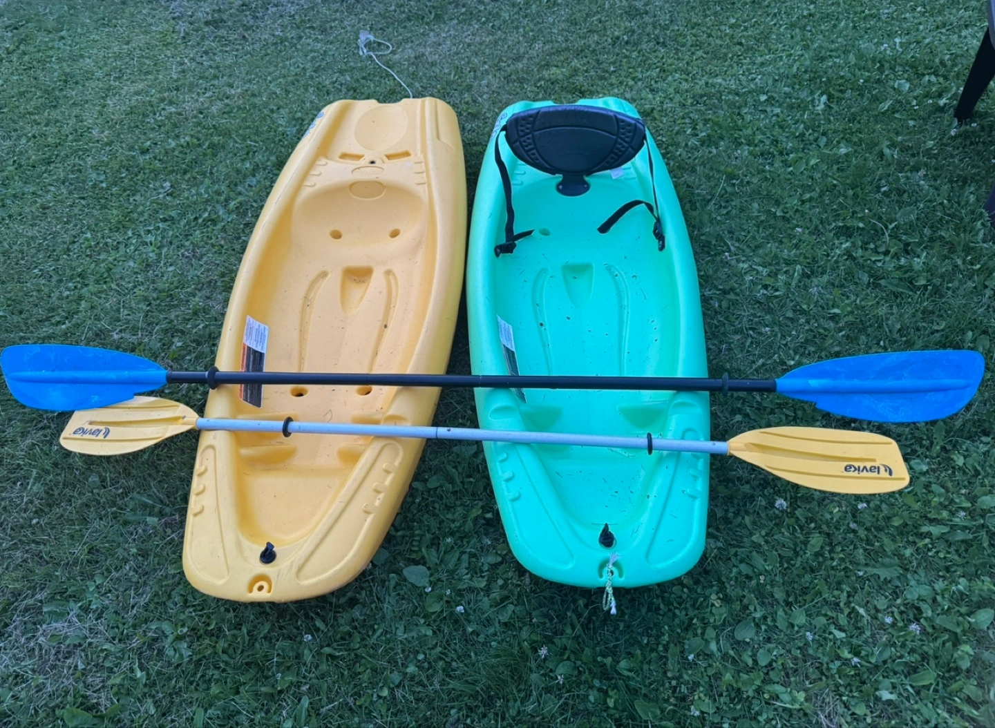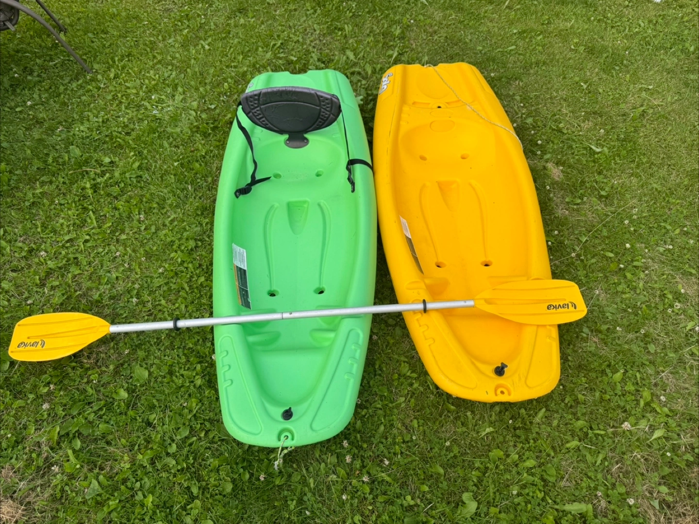 Selling a pair of Kid’s kayaks, one in a vibrant green and the other in a sunny yellow. Both come with paddles. They're perfect for enjoying some time on the water this summer! $100 for both