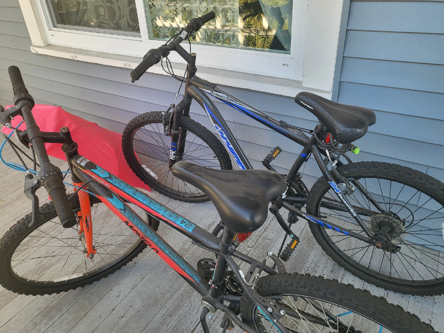 Two mountain bikes are up for grabs! One is a Hyper Boundary Trail and the other is a Movaelo bike. Both are in good condition and ready for some outdoor adventures