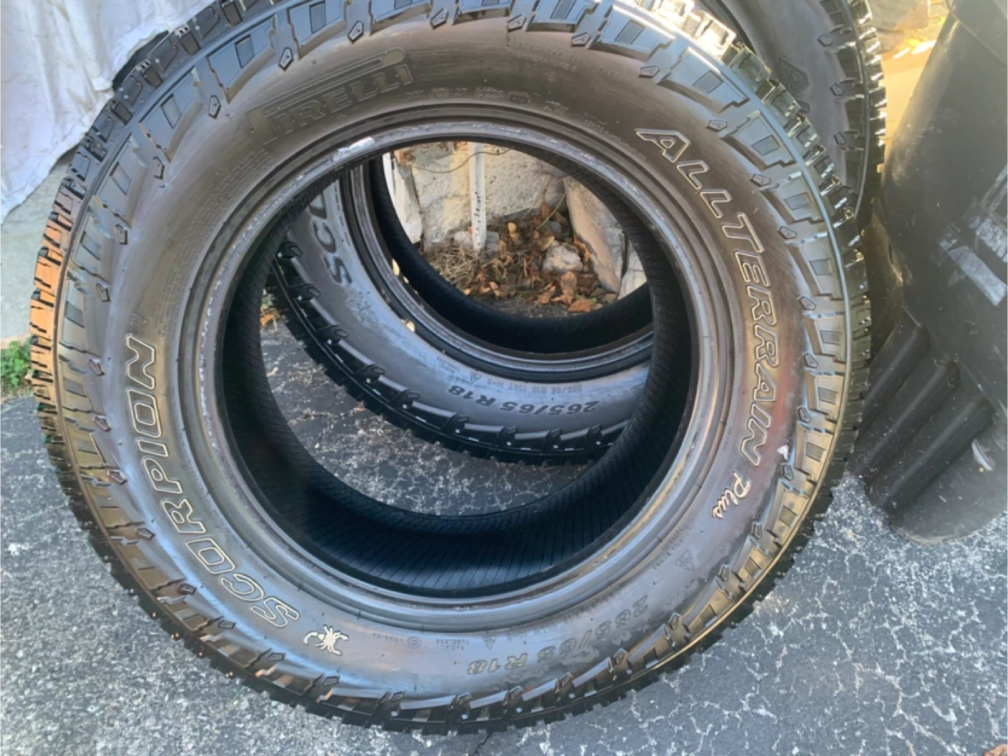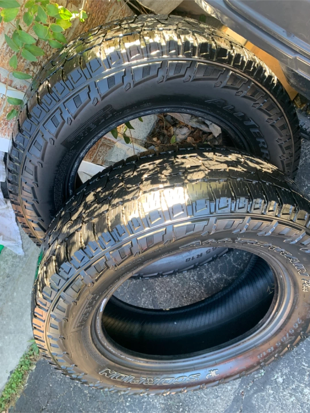 set of two All Terrain winter tires off rim. Pirelli Scorpion ALL TERRAIN plus tires. In good condition good tread. Only two tires total $220