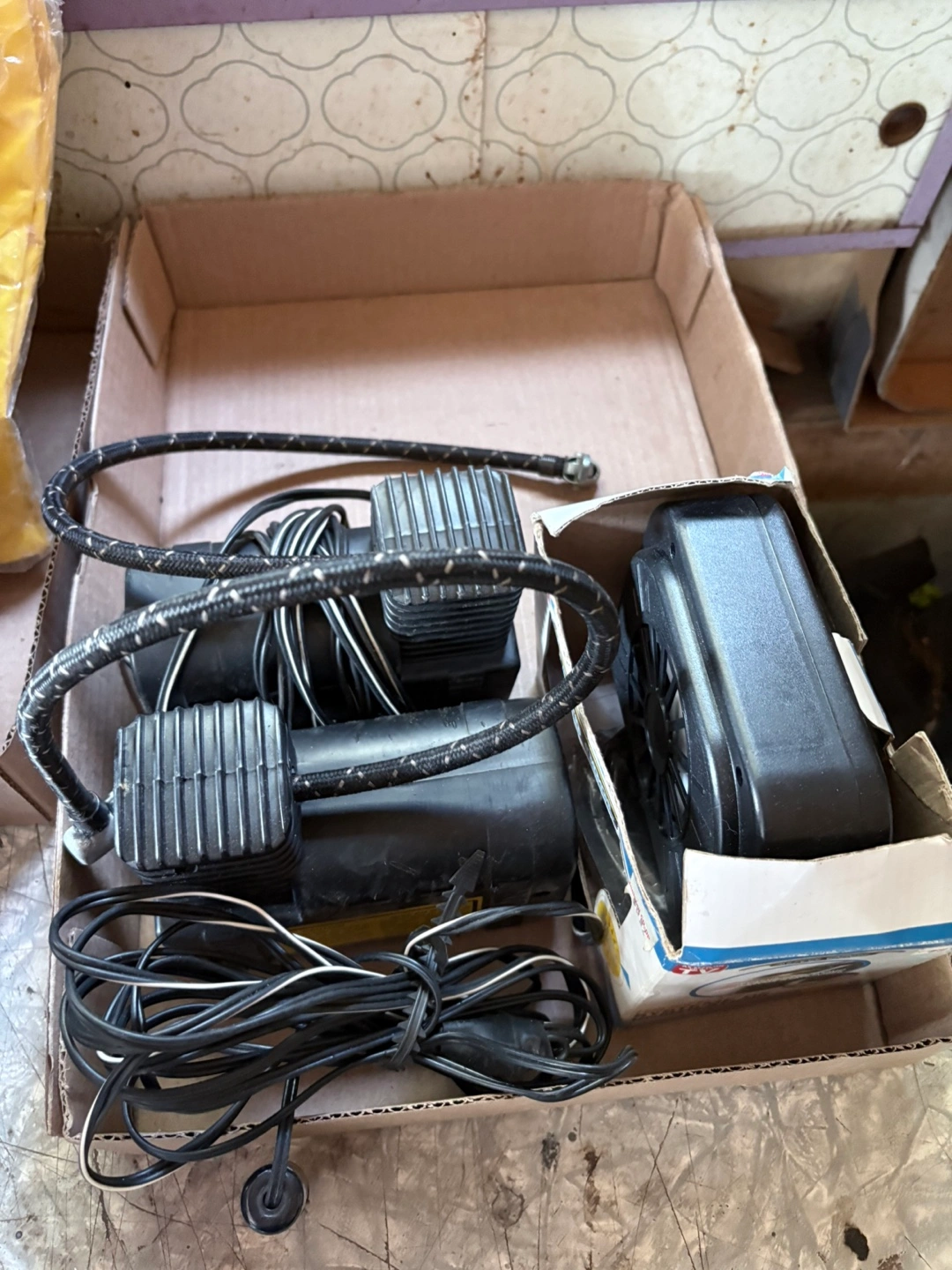 Selling two portable air compressors. It comes with the box and all the cords you need to get it running. It's in good condition and ready to help you inflate your tires or other inflatables! $5 each