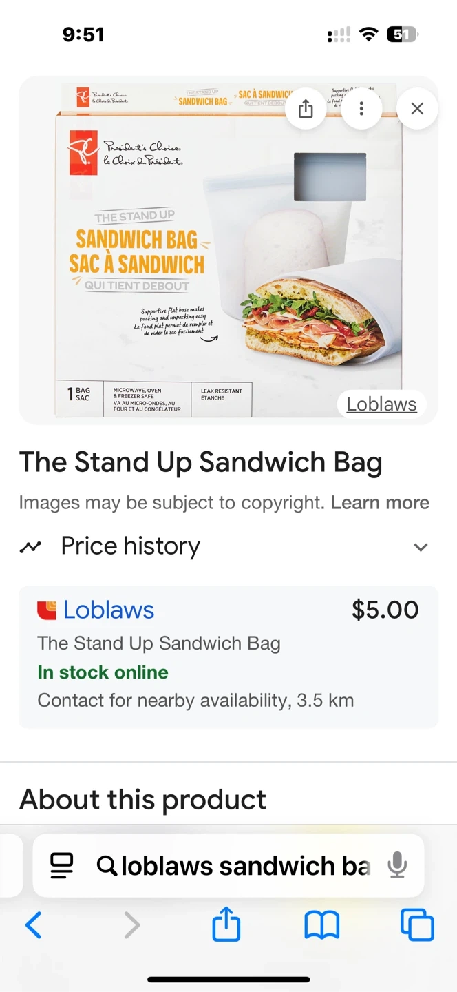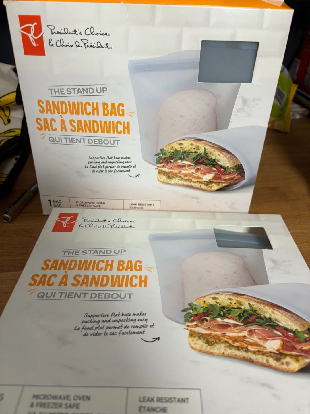 Selling President's Choice 'The Stand Up Sandwich Bags'! They're microwave, oven, and freezer safe, plus leak resistant. Great for packing lunches or storing leftovers There are 4 available