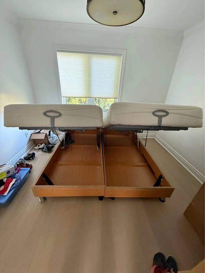Two single adjustable beds with remote control and storage