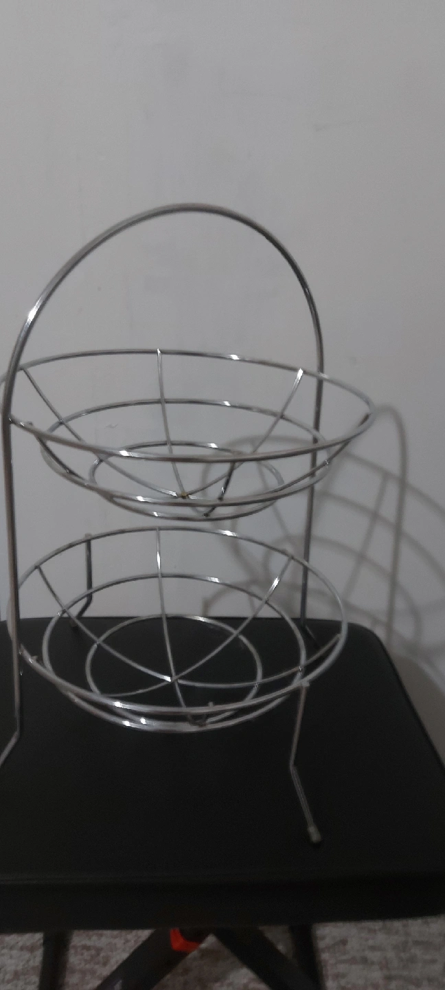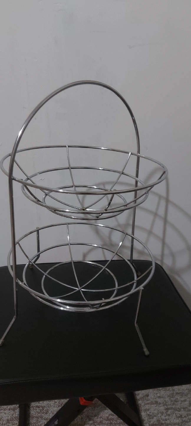 Selling a two-tier fruit basket! It's made of chrome and is in great condition. Perfect for adding a touch of style to your kitchen while keeping your fruit organized