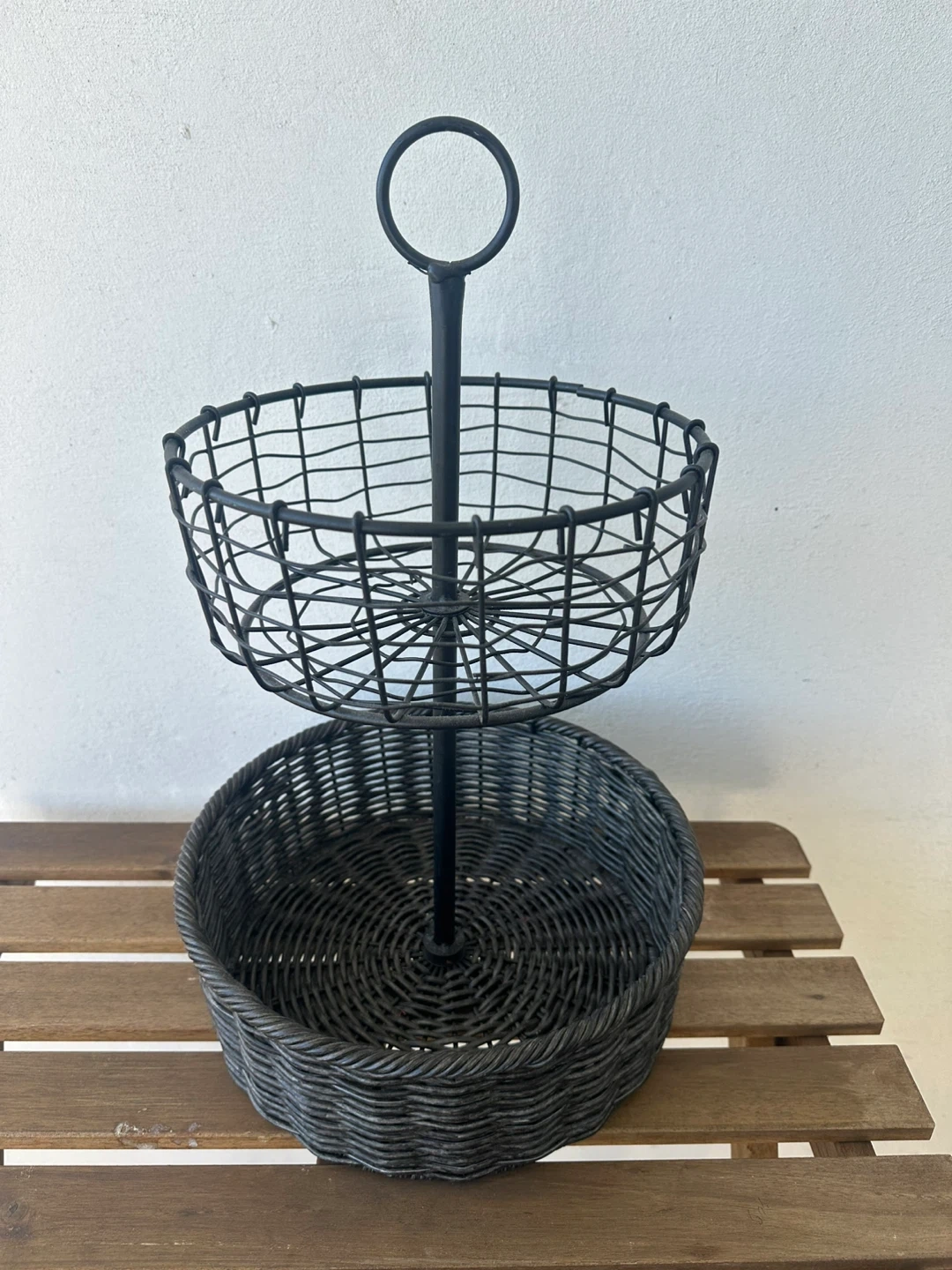 Selling a gently used cute two-tiered basket stand! It's perfect for displaying fruits, snacks.