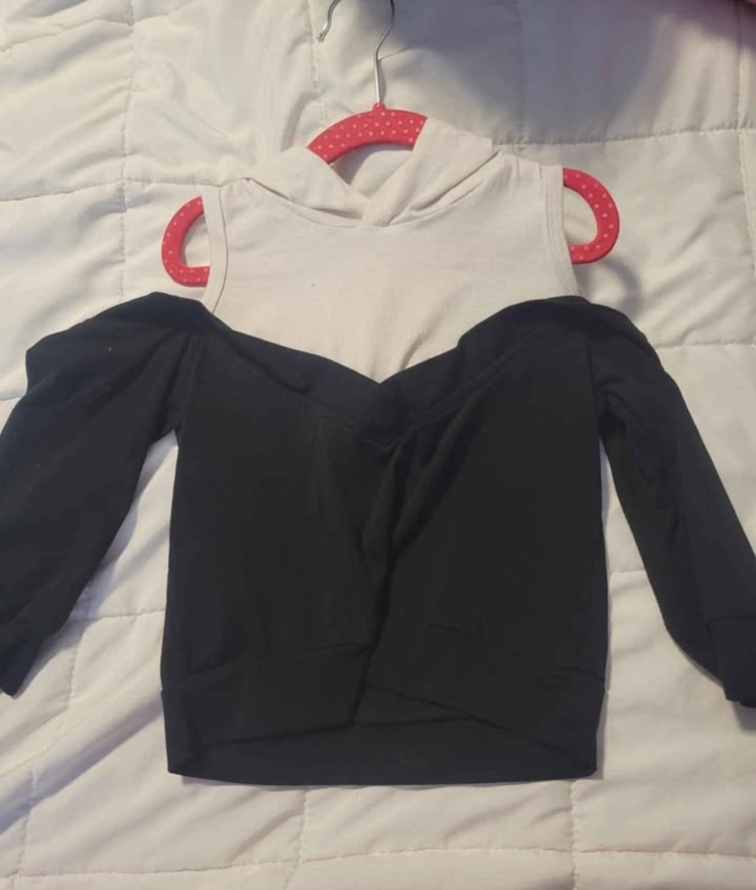 Cute toddler hoodie in a black and white colour block design! It features a unique V-neck detail and long sleeves with a comfortable fit. Perfect for keeping your little one cozy and stylish on cooler days. Size 3/4T