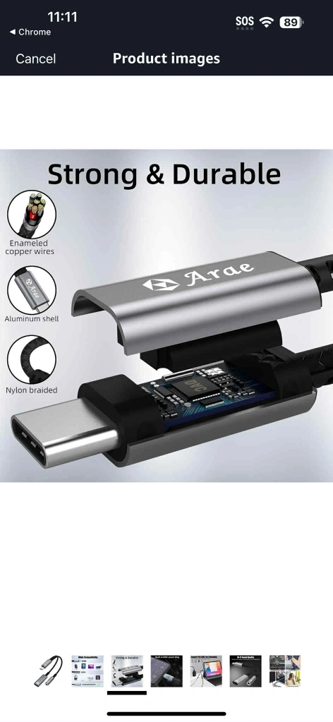 Selling an Arae Type-C to 3.5mm audio adapter! It's designed for wide compatibility with smartphones, tablets, laptops, and game consoles. Key features: - Supports PD 60W fast charging - Hi-Fi sound quality - Strong and durable with an aluminum shell and nylon braided cable