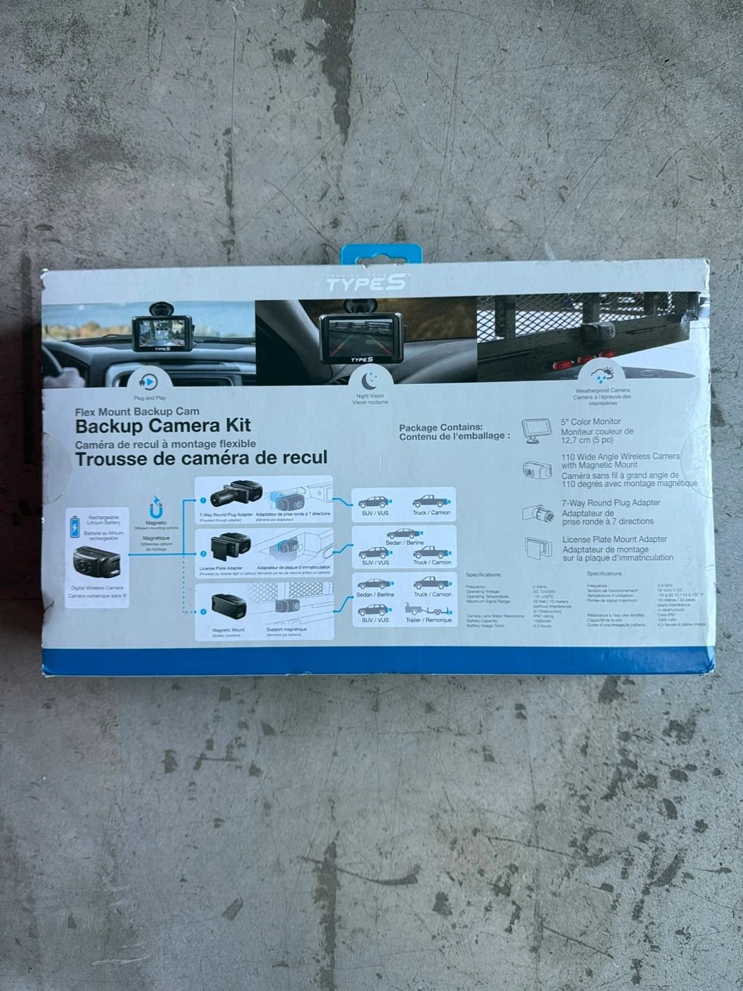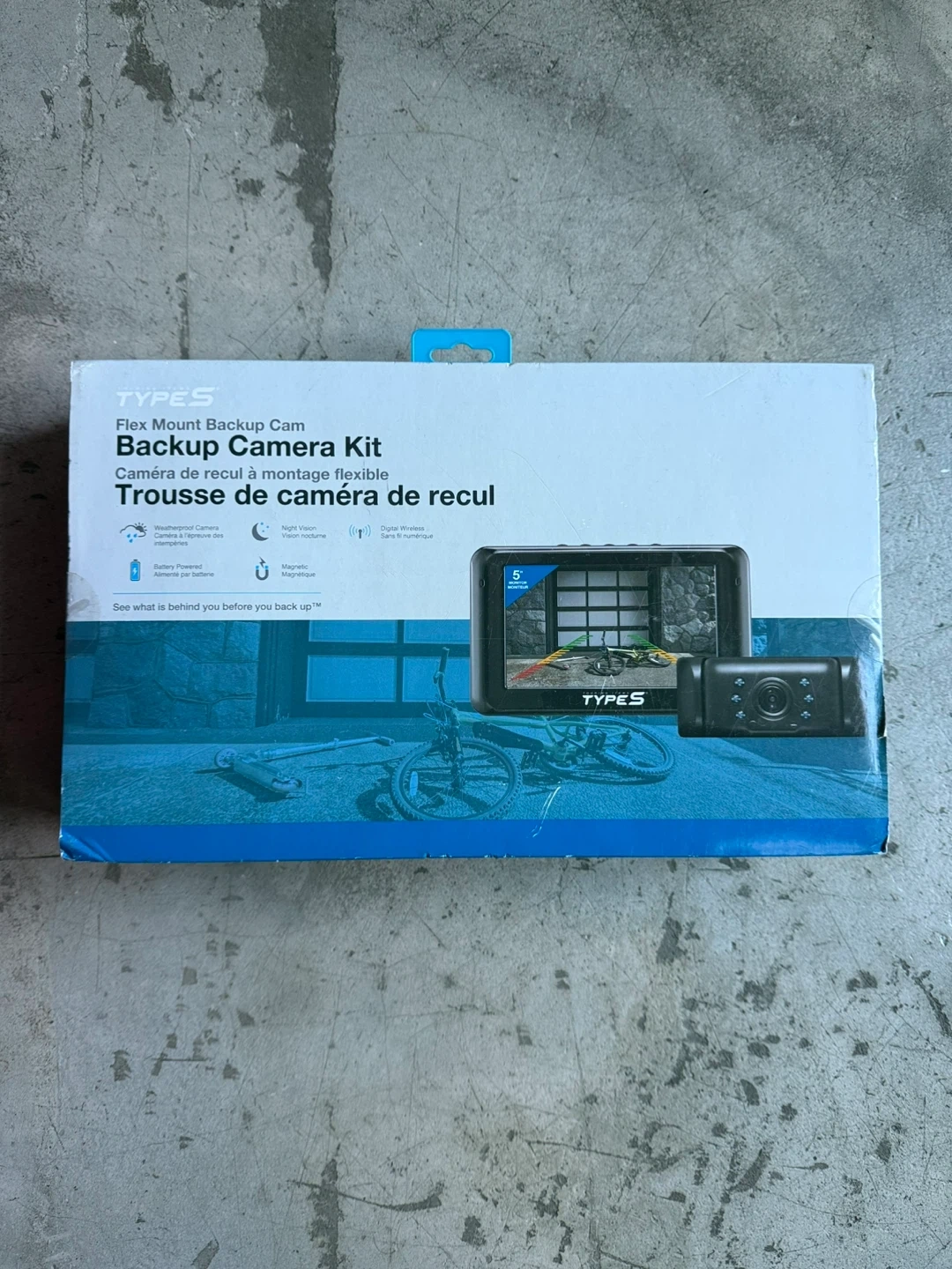Unopened and never been used - New in Box Type S Flex Mount Backup Camera with 5 Monitor Sells for $200, asking for $90 OBO Free pick up in Liberty Village. Main intersection is King St W and Dufferin.