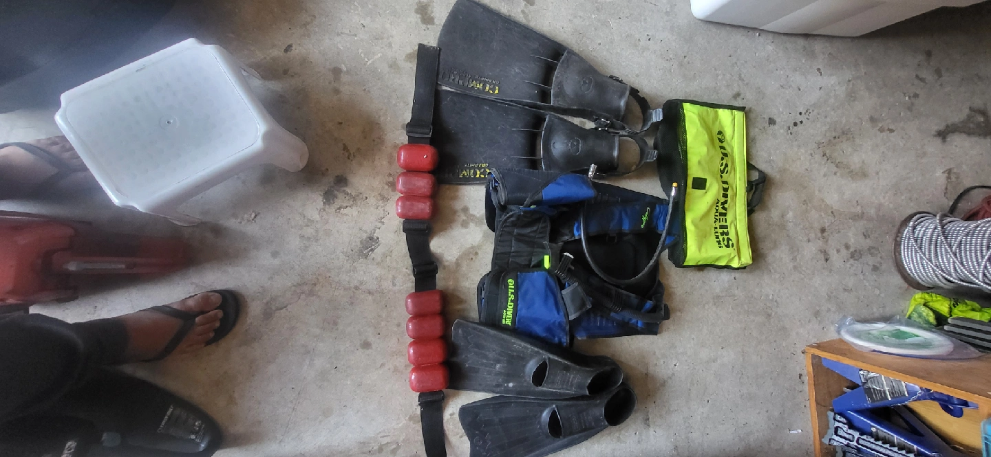 Selling a set of U.S. Divers scuba diving gear! Includes a buoyancy compensator (BCD), fins, and a weight belt. Everything you need to get started on your underwater adventures