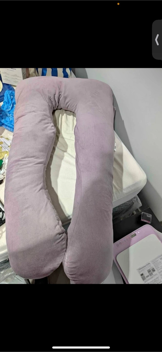Cozy lavender U-shaped full body pillow! Perfect for getting comfy and supporting your body while relaxing or sleeping