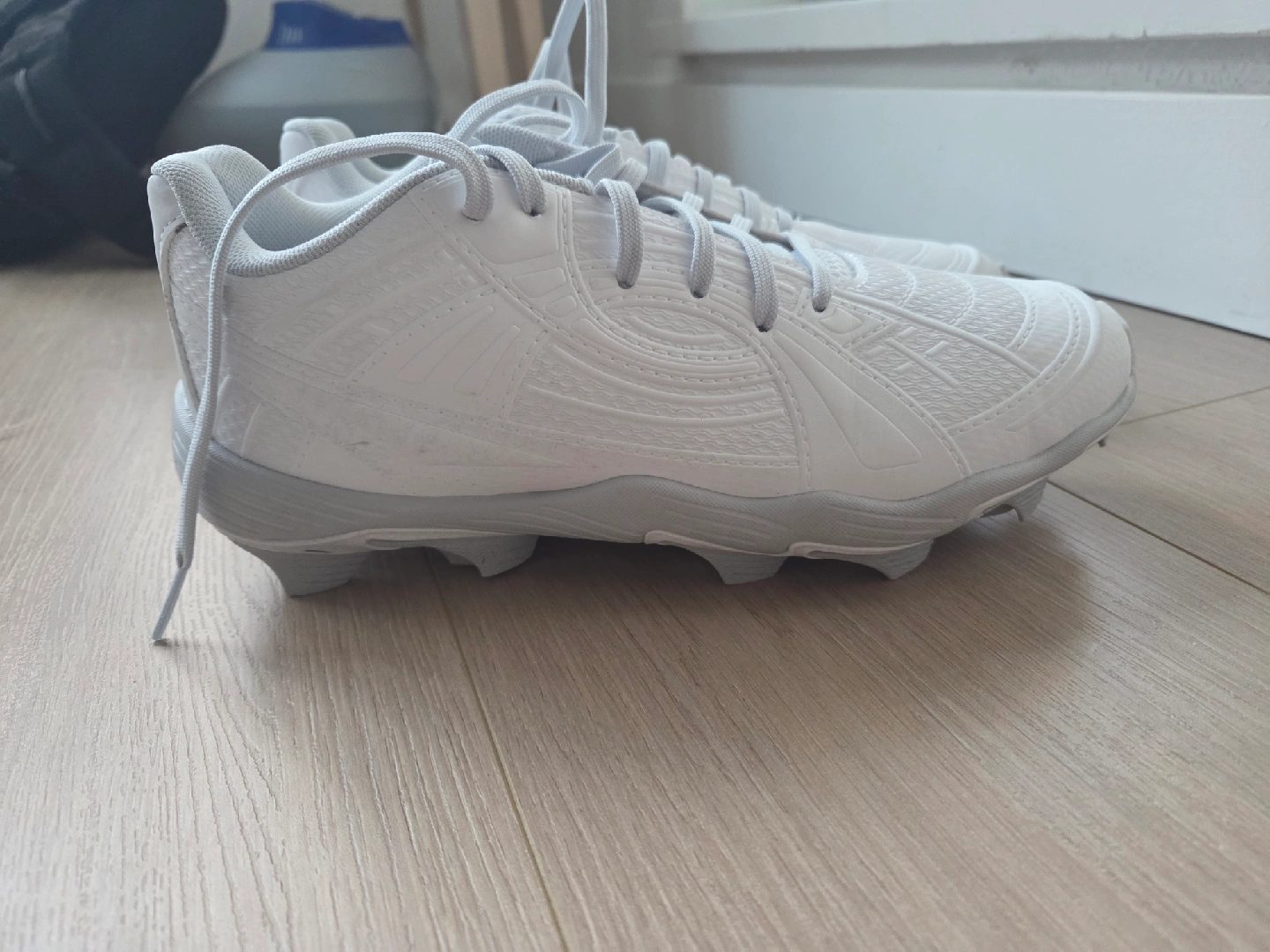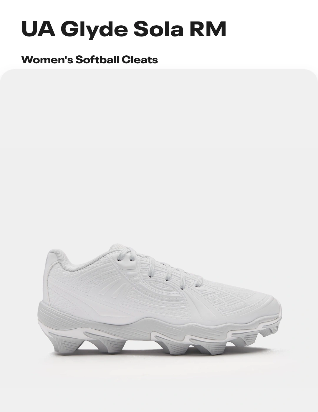 Selling a pair of Under Armour Glyde Sola RM women's softball cleats size 8. selling because i bought the wrong pair of cleats. worn once for 30 min; otherwise brand new