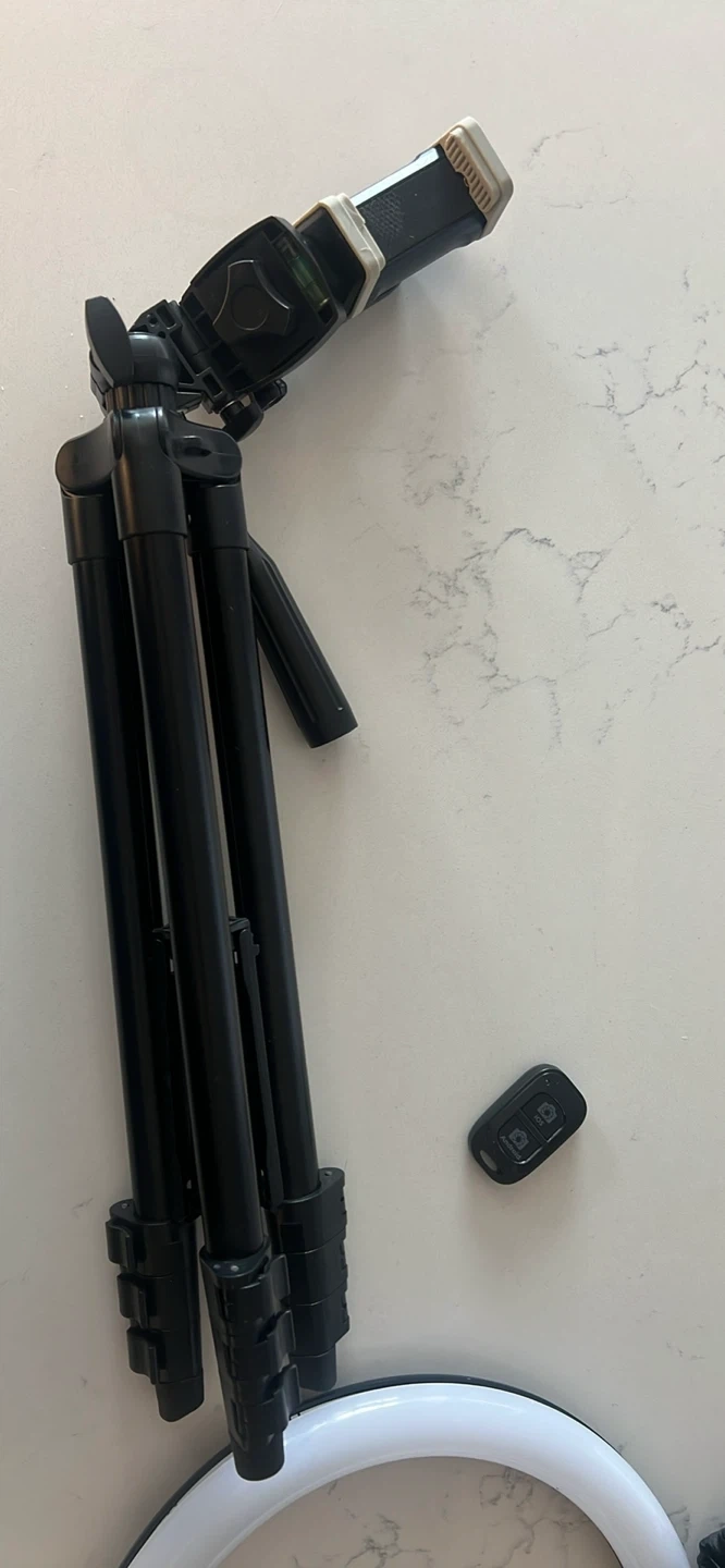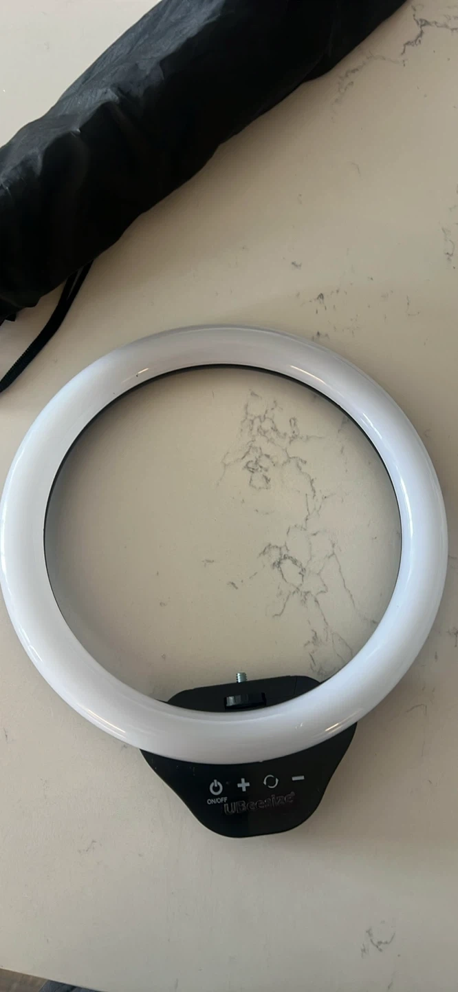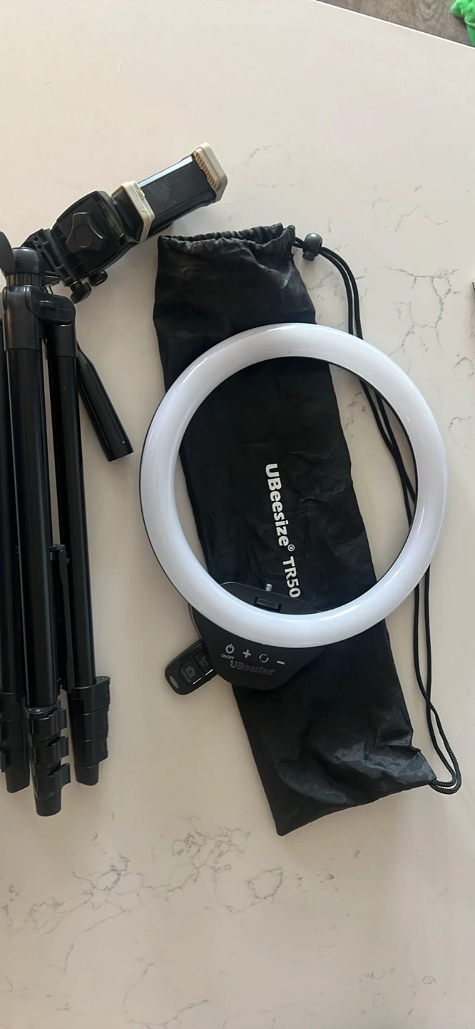 Selling a UBeesize TR50 ring light. It comes with a tripod and a remote for easy control. Perfect for content creation or video calls!