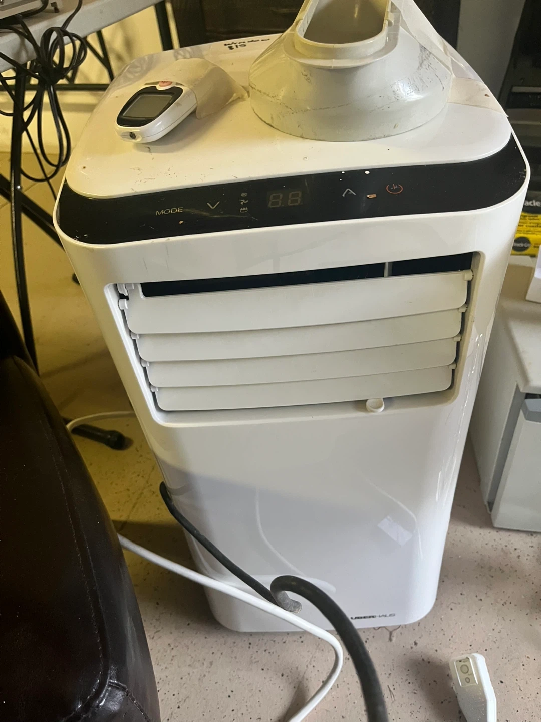 Selling a used Uberhaus portable air conditioner. It has a remote control and is in good working condition. Perfect for cooling down a room during the summer months!