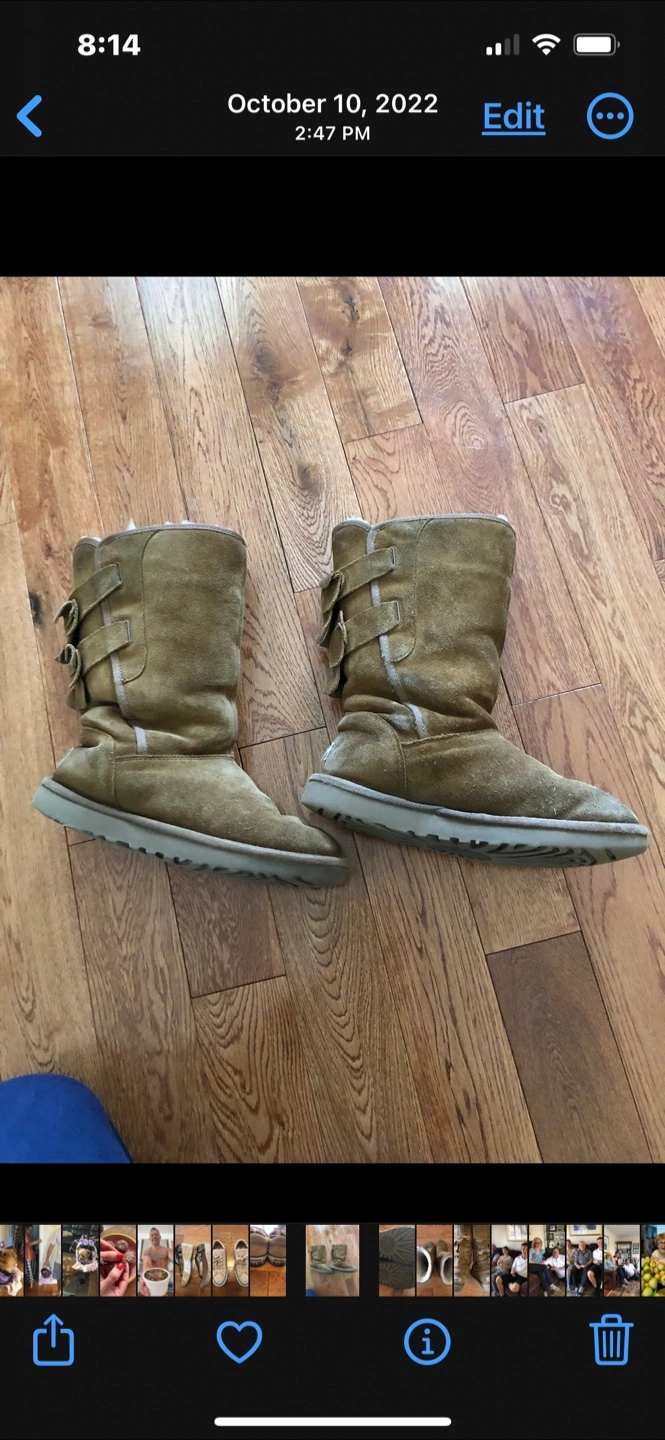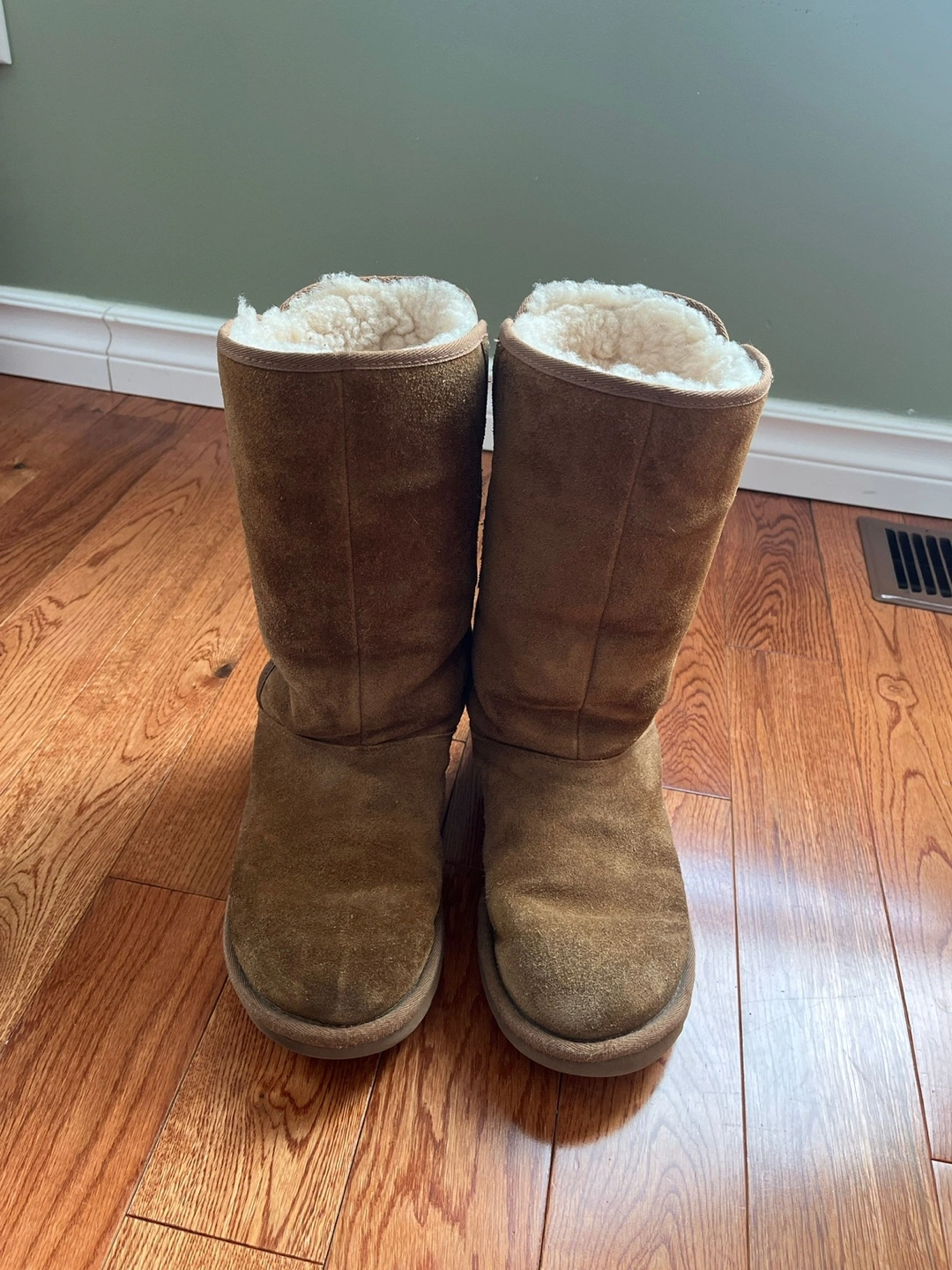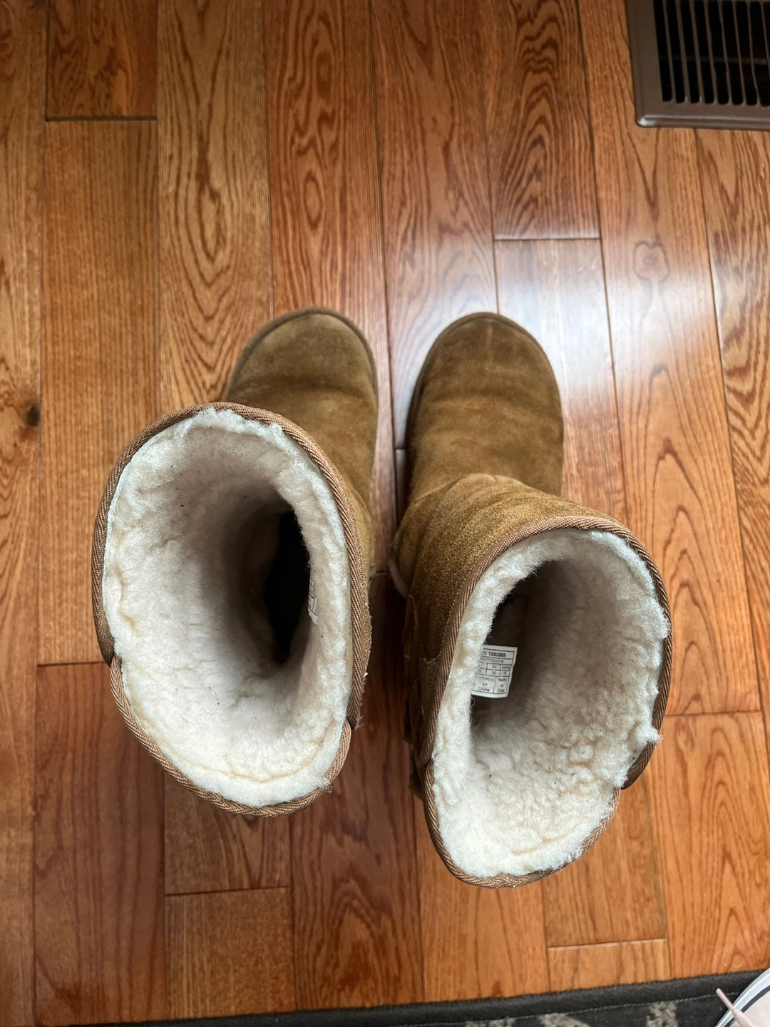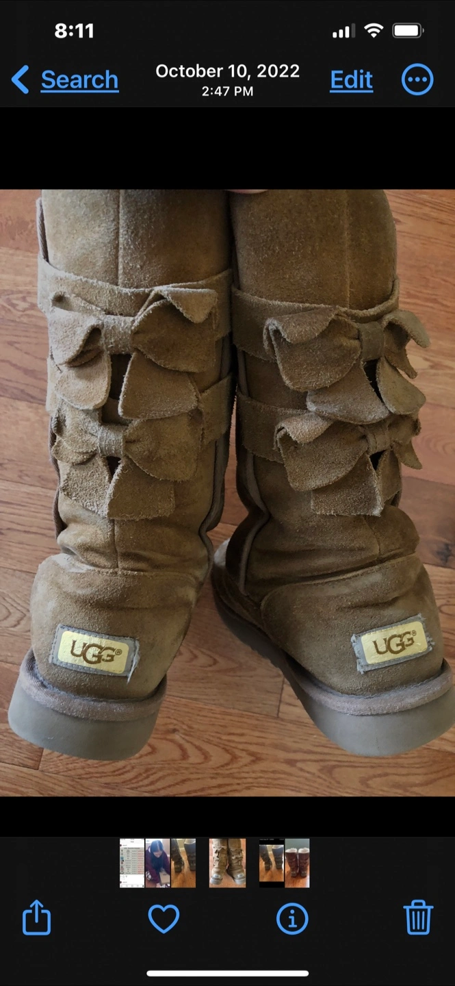 Cozy UGG Bailey Bow boots in a women's size 7! These are perfect for keeping your feet warm and stylish during the colder months. Some wear, but still have lots of life left in them!