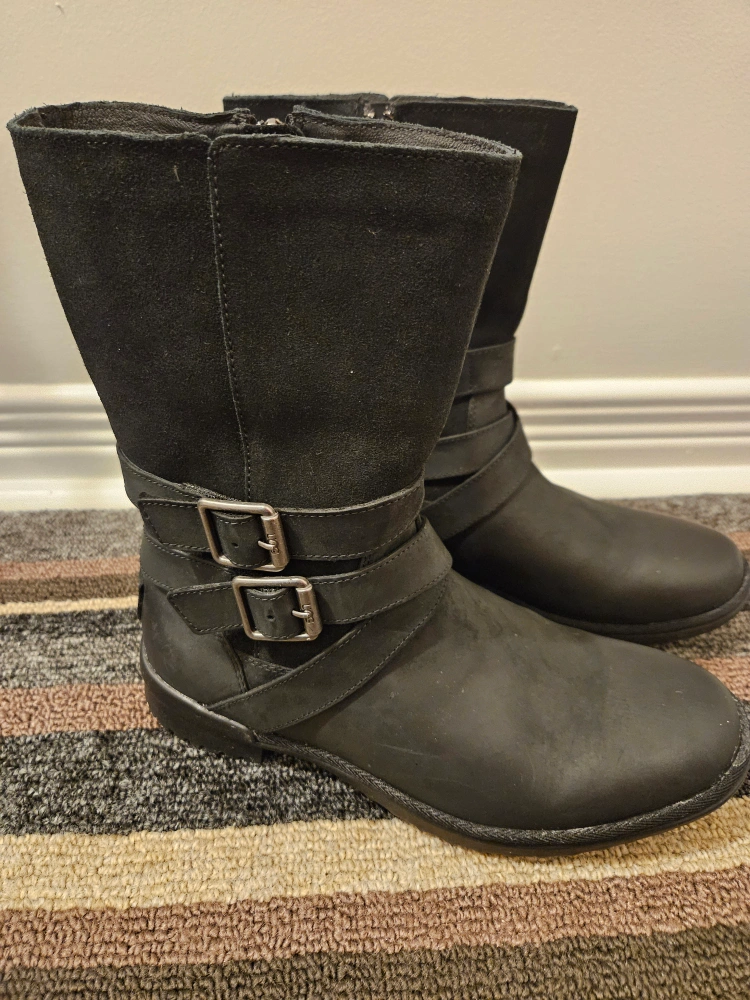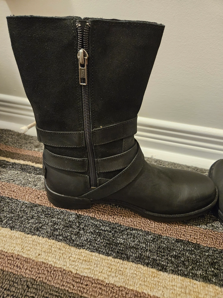 Selling a pair of UGG boots in great condition. These boots feature a stylish strap and buckle design and a convenient side zipper. Size 7.